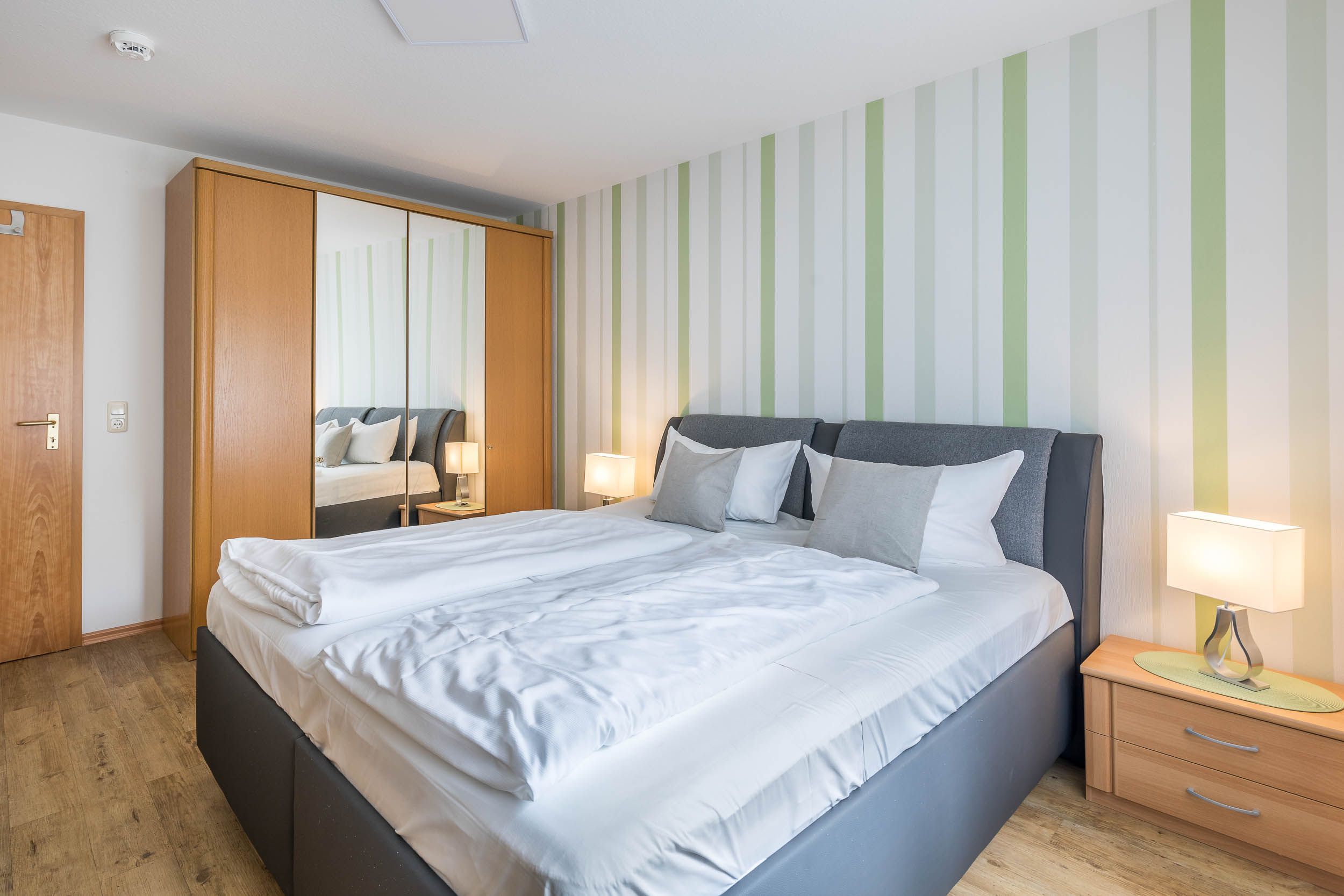 Nach einem schönen Tag können Sie gemütlich in dem Schlafzimmer mit Doppelbett (Boxspringbett 180x200cm) schlummern. Ein Kleiderschrank für Ihre Urlaubsgarderobe und ein 2. SAT-TV runden die Ausstattung im Schlafzimmer ab.