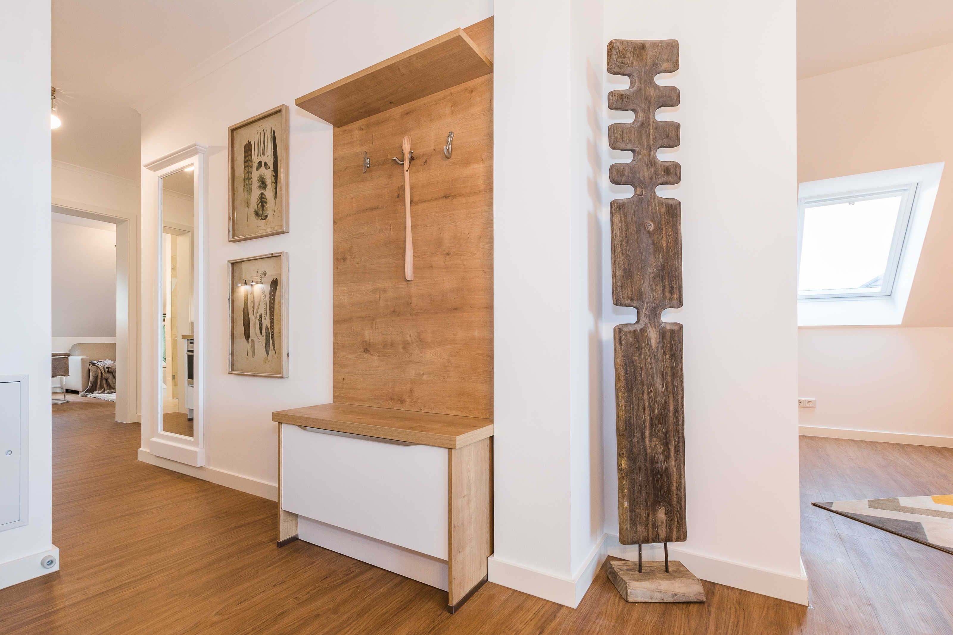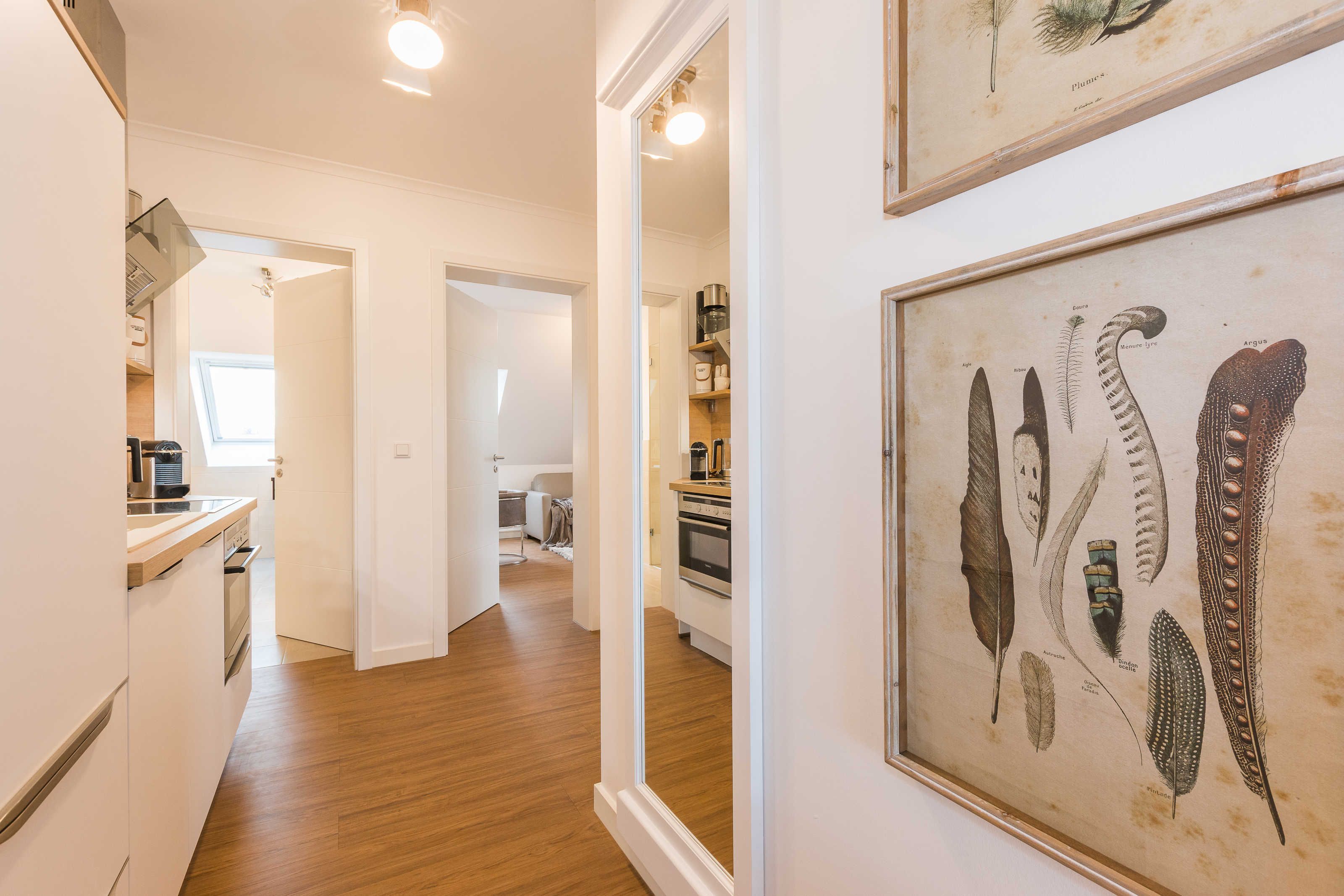 Die sonnendurchflutete Ferienwohnung verfügt über ein Schlafzimmer, ein Gäste-Zimmer mit ausklappbarer Schlafcouch sowie ein großzügiges Wohn- und Esszimmer mit voll ausgestatteter Küche. Die Süd-West-Lage und zwei große Balkone bieten die Garantie für einen fantastischen Ausblick auf die Ostsee und das Villenresort Ostseestrand. Individualität und die Liebe zum Detail stehen bei der maritimen Einrichtung im Vordergrund.