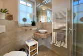 Zwei liebevoll eingerichtete Schlafzimmer sorgen für erholsame Nächte, während die modernen Badezimmer mit klaren Linien und hochwertigen Materialien ein Gefühl von Ruhe und Eleganz vermitteln.
