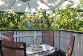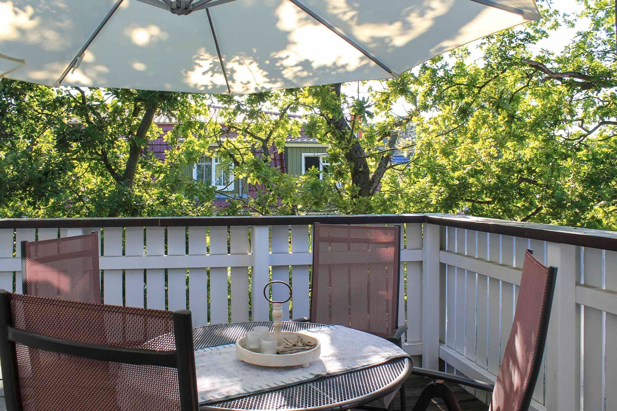 • Balkon: Eigener Balkon mit Gartenmöbeln und Sonnenschirm