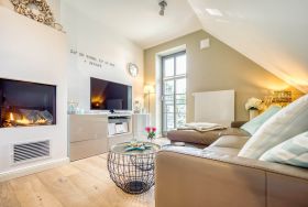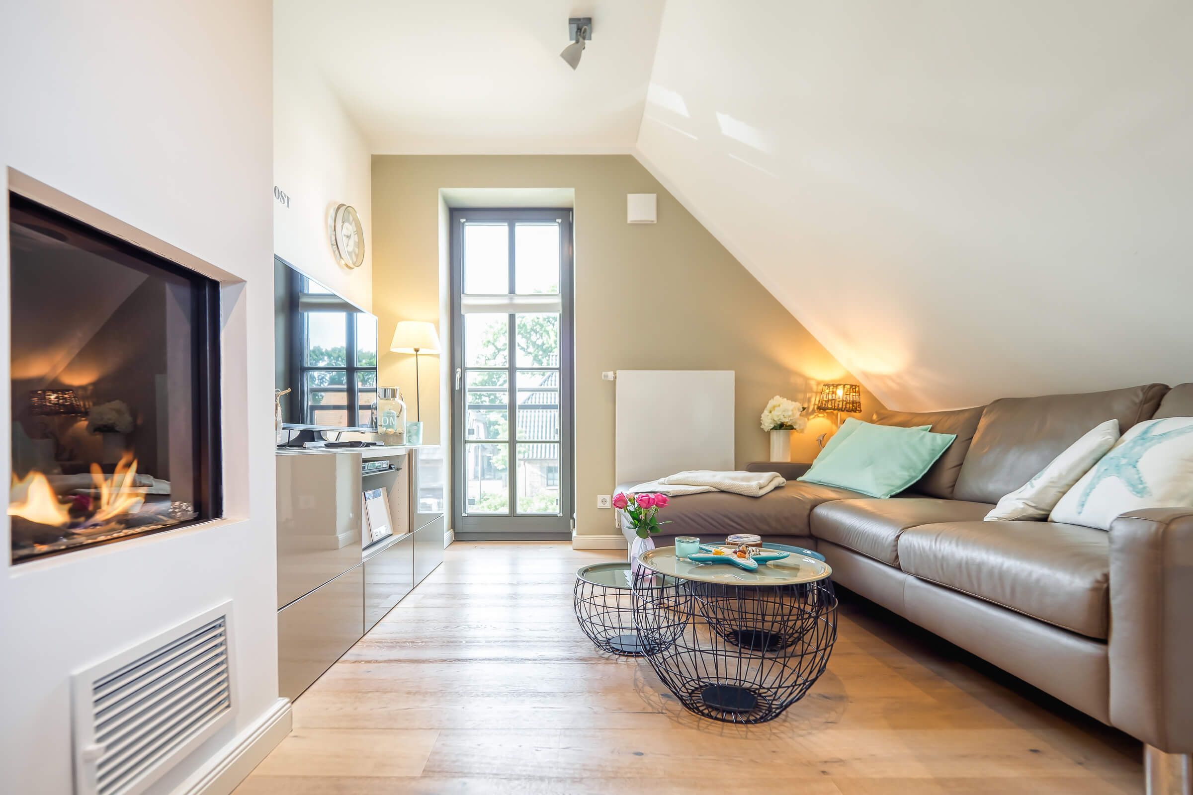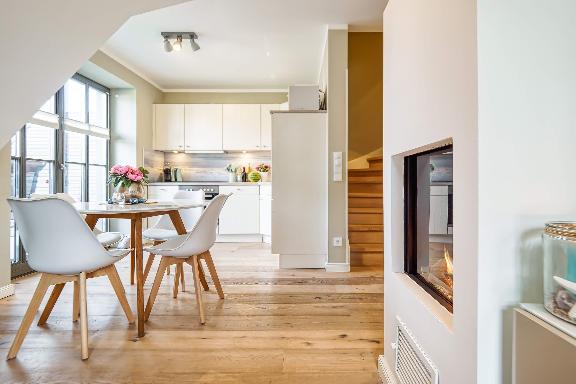 Die lichtdurchflutete Ferienwohnung empfängt Sie mit einer modernen und gemütlichen Atmosphäre. Der offene Wohn- und Essbereich mit Gaskamin bildet das Herzstück der Wohnung und lädt zu entspannten Abenden ein ob bei einem guten Buch oder einem gemeinsamen Spieleabend. Die voll ausgestattete Küche bietet alles, um leckere Mahlzeiten für Ihre Liebsten zuzubereiten.