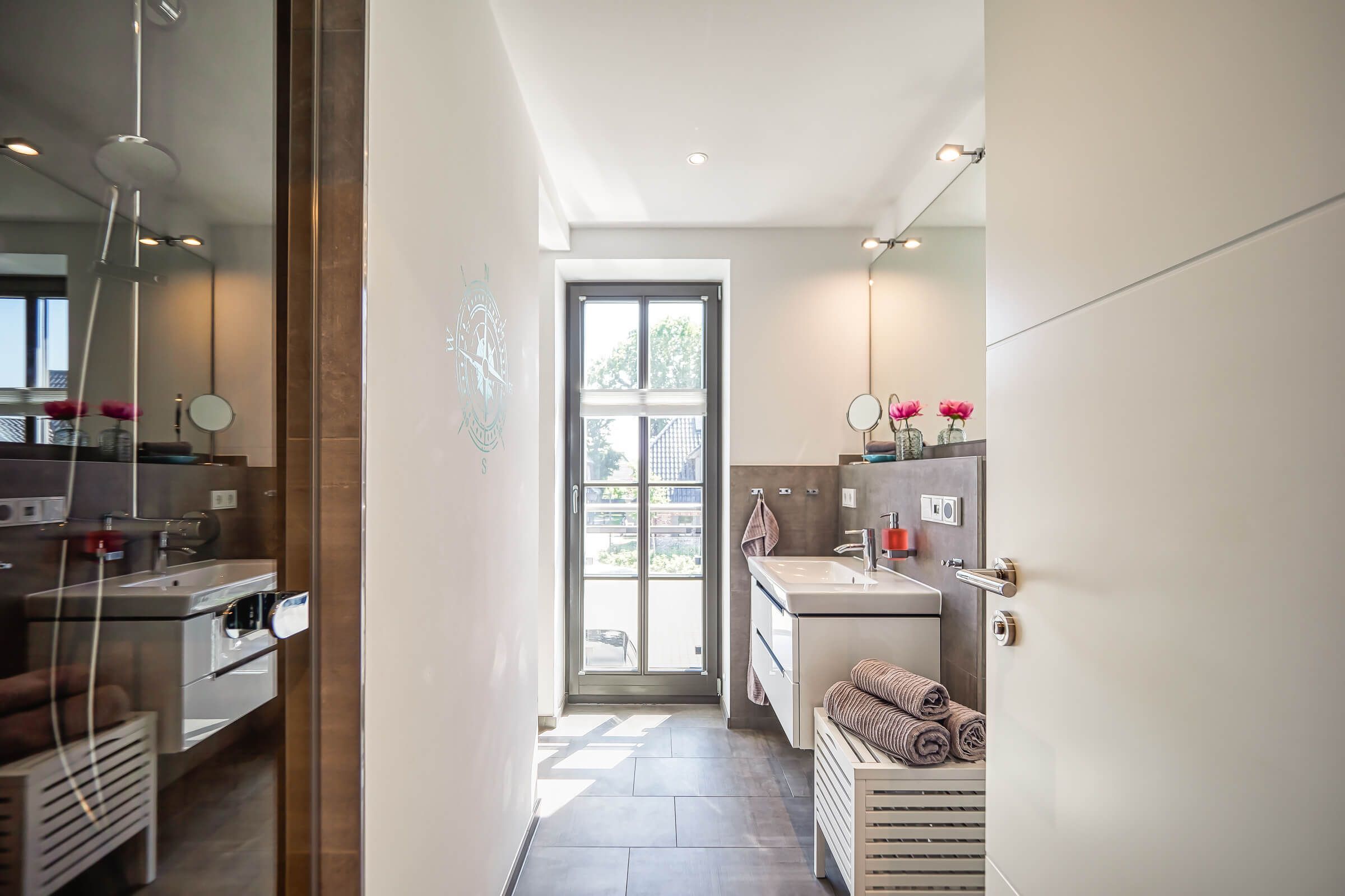 Nach einem langen Tag an der frischen Ostseeluft bietet die bodentiefe Raindance-Dusche eine erfrischende Möglichkeit, zu entspannen. Der windgeschützte Balkon ist der perfekte Ort, um den Tag mit einem Frühstück zu beginnen oder abends die letzten Sonnenstrahlen zu genießen. Für Radfahrer steht ein abschließbares Fahrraddepot mit E-Bike-Lademöglichkeit zur Verfügung.
