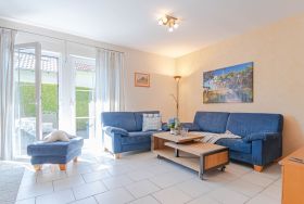 • Gemütlicher Wohnbereich mit einladender Sitzgruppe und TV-Flachbildschirm