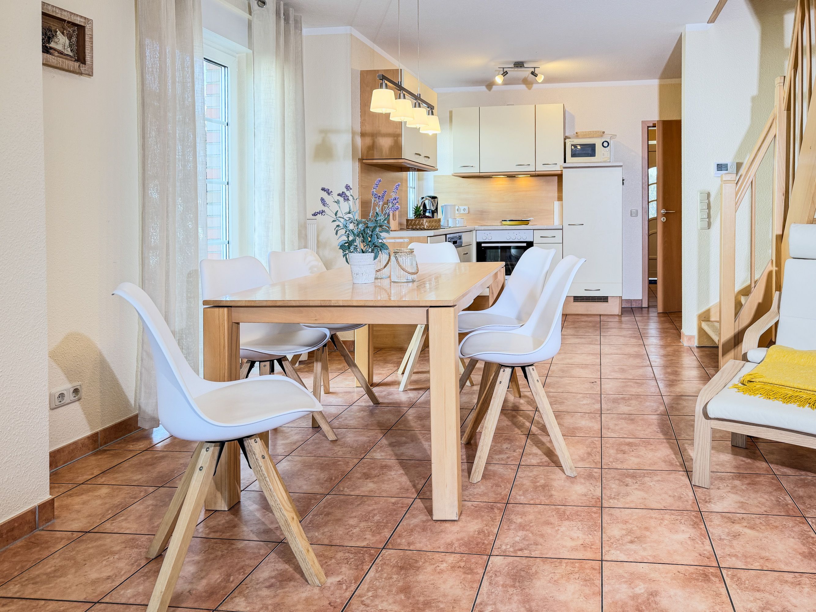 Das Reethus Natalie empfängt Sie mit einer warmen und einladenden Atmosphäre. Der gemütliche Wohnbereich ist das Herz des Hauses und lädt zu entspannten Abenden ein sei es bei einem guten Buch oder einem gemeinsamen Spieleabend. Die moderne Küche ist vollständig ausgestattet, sodass Sie mühelos köstliche Mahlzeiten für Ihre Liebsten zubereiten können.