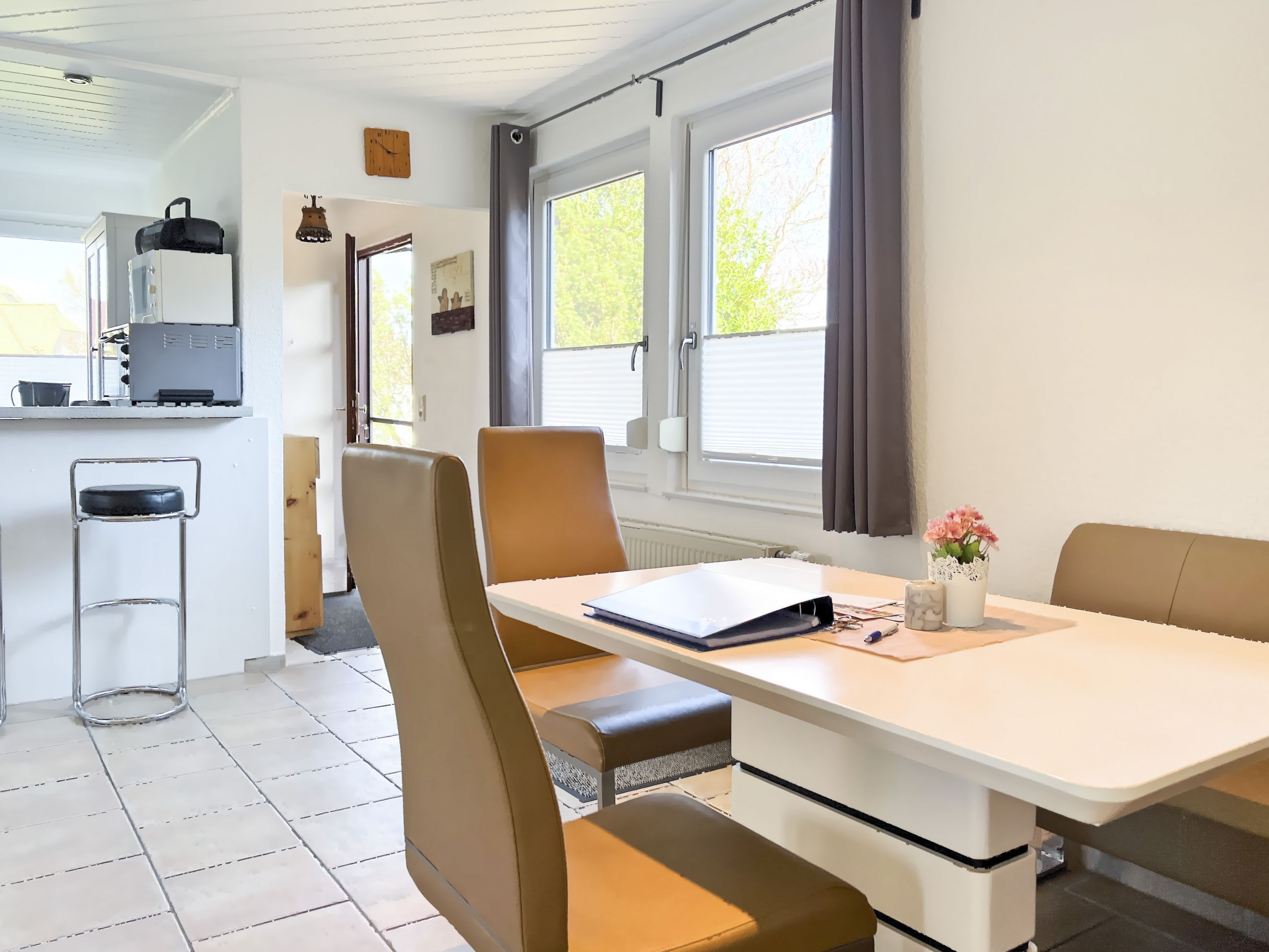 Das Ferienhaus Boddenwind No. 2 empfängt Sie mit einer warmen und einladenden Atmosphäre. Der offene Wohn- und Essbereich ist der perfekte Ort für entspannte Abende sei es bei einem guten Buch oder einem gemeinsamen Spieleabend. Die moderne Küchenzeile ist vollständig ausgestattet, sodass Sie mühelos köstliche Mahlzeiten für Ihre Liebsten zubereiten können.