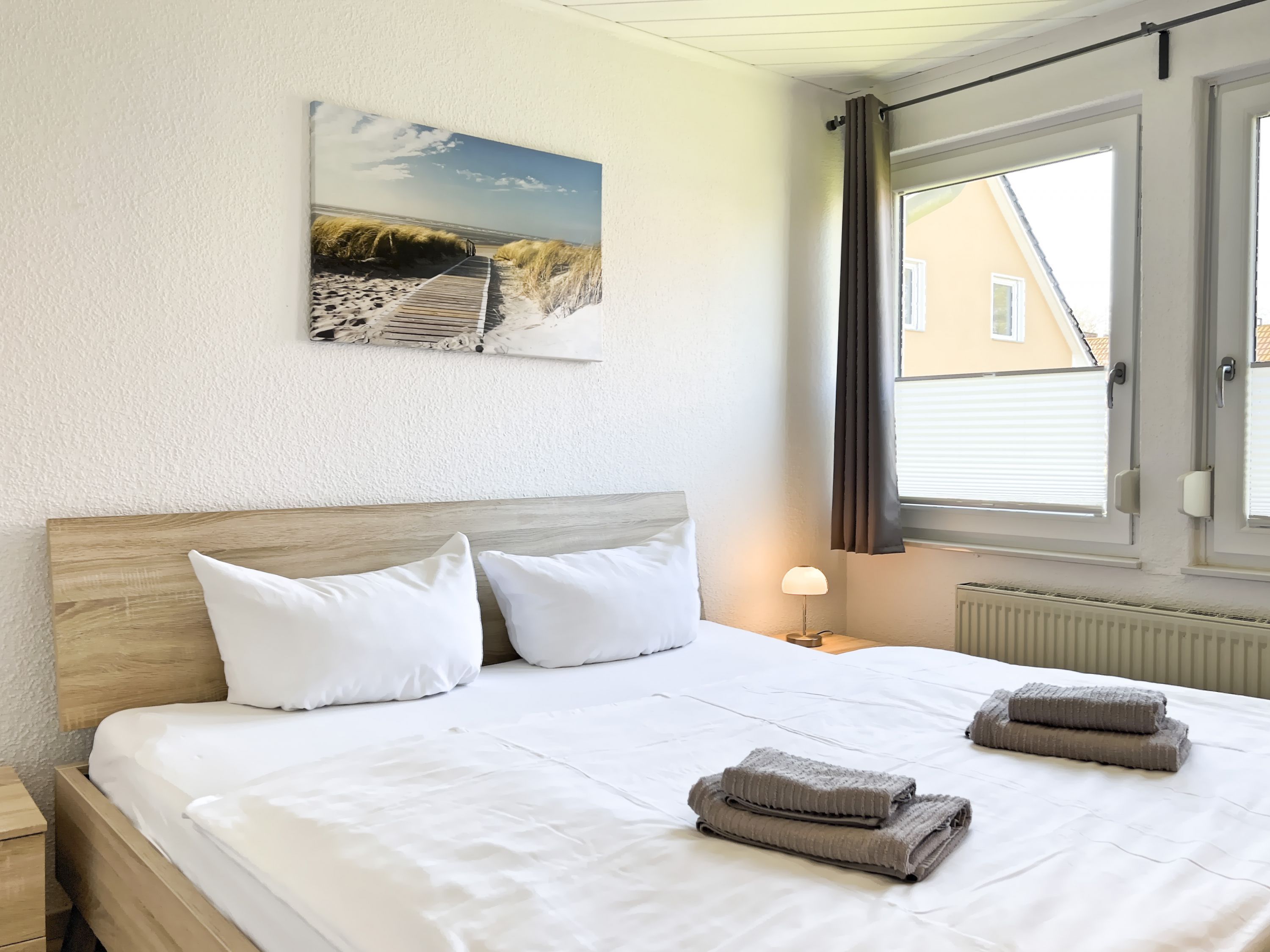• Ein Schlafzimmer mit Doppelbett für erholsamen Schlaf