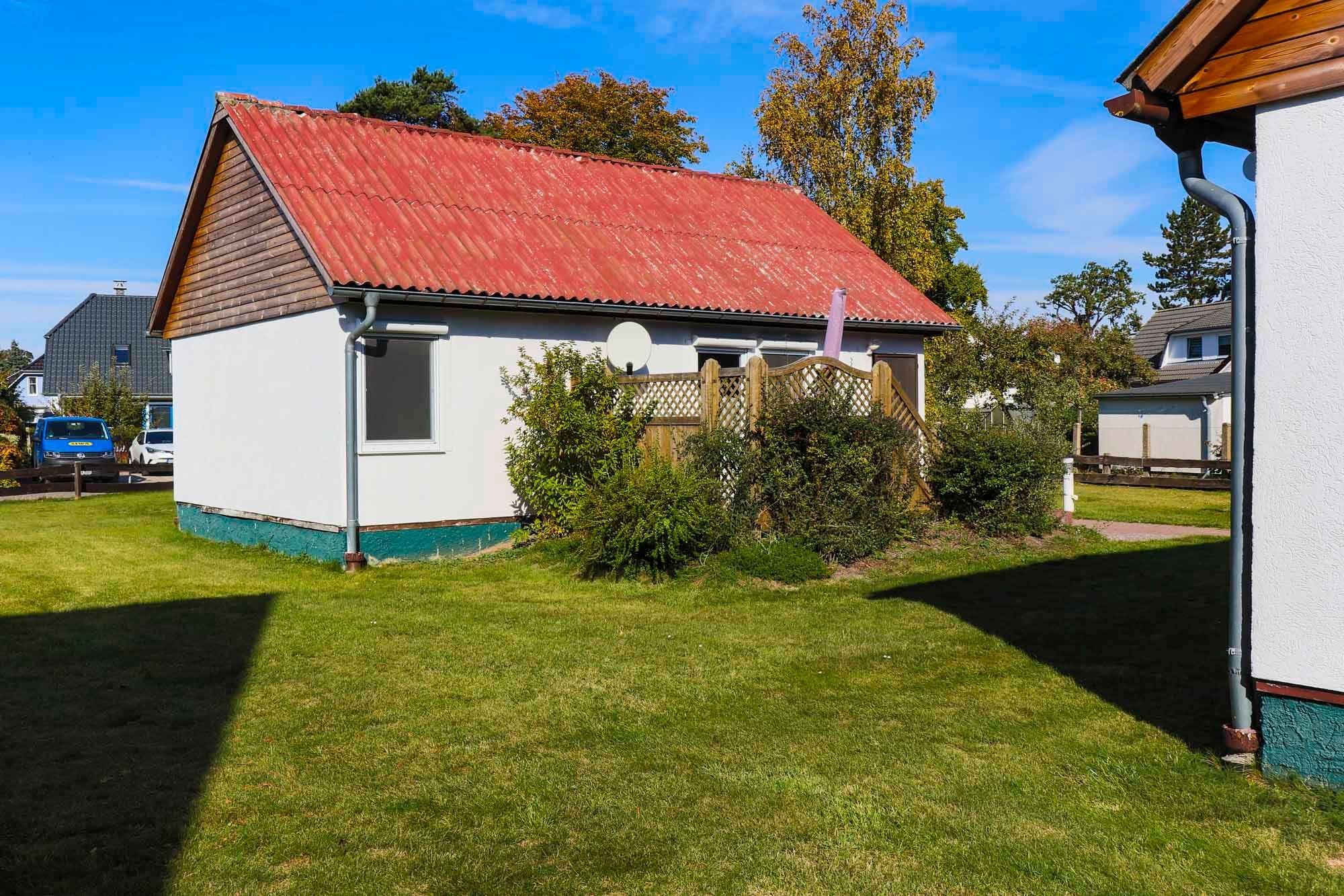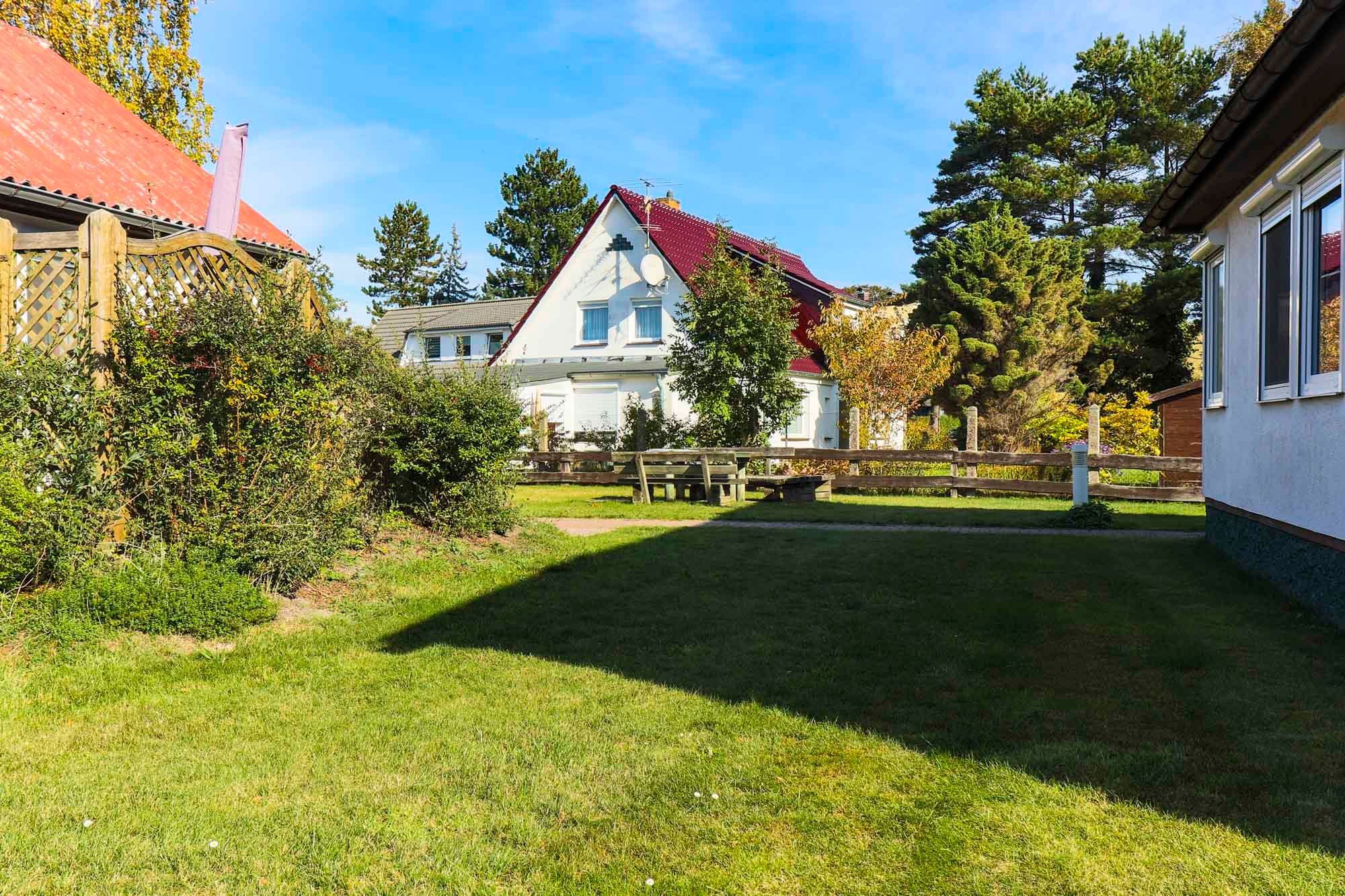 Nach einem erlebnisreichen Tag an der frischen Ostseeluft lädt die Terrasse mit angrenzendem Garten zum Verweilen ein. Beginnen Sie den Tag mit einem Frühstück im Freien oder genießen Sie abends die Ruhe bei einem Glas Wein. Die grüne Umgebung bietet zudem ausreichend Platz für Ihren Vierbeiner, der in diesem haustierfreundlichen Ferienhaus herzlich willkommen ist.