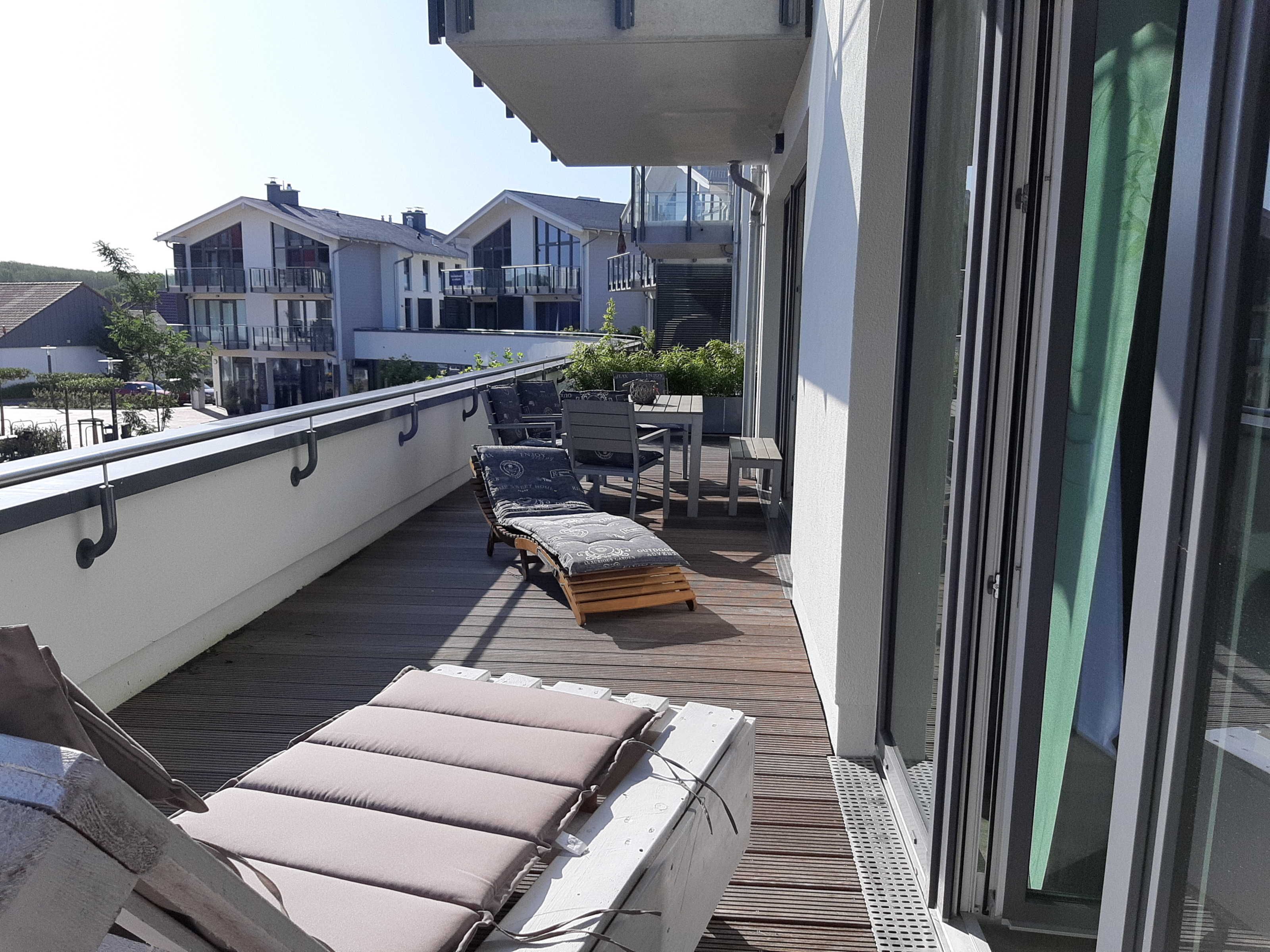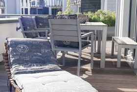 Die Wohnung bietet auf 70qm einen gemütlichen Wohnraum mit integrierter Küche, einen Schlafraum mit Doppelbett und ein Bad mit Dusche. Die riesige Dachterrasse ist aus dem Wohn- wie auch aus dem Schlafbereich begehbar.