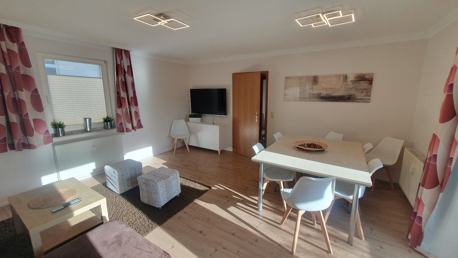 gemütliches Ferienhaus mit einer Wohnfläche von 110 qm über drei Etagen verteilt, Belegung mit maximal zehn Personen möglich, durch eine etwas unkonventionelle geschickte Zimmerverteilung ist ein separater Wohn-Schlaf-Bereich entstanden, der ideal für Kinder genutzt werden kann, separate Küche, großzügiger Wohn-Essbereich mit angrenzender Terrasse, eigener Pkw-Stellplatz direkt am Haus