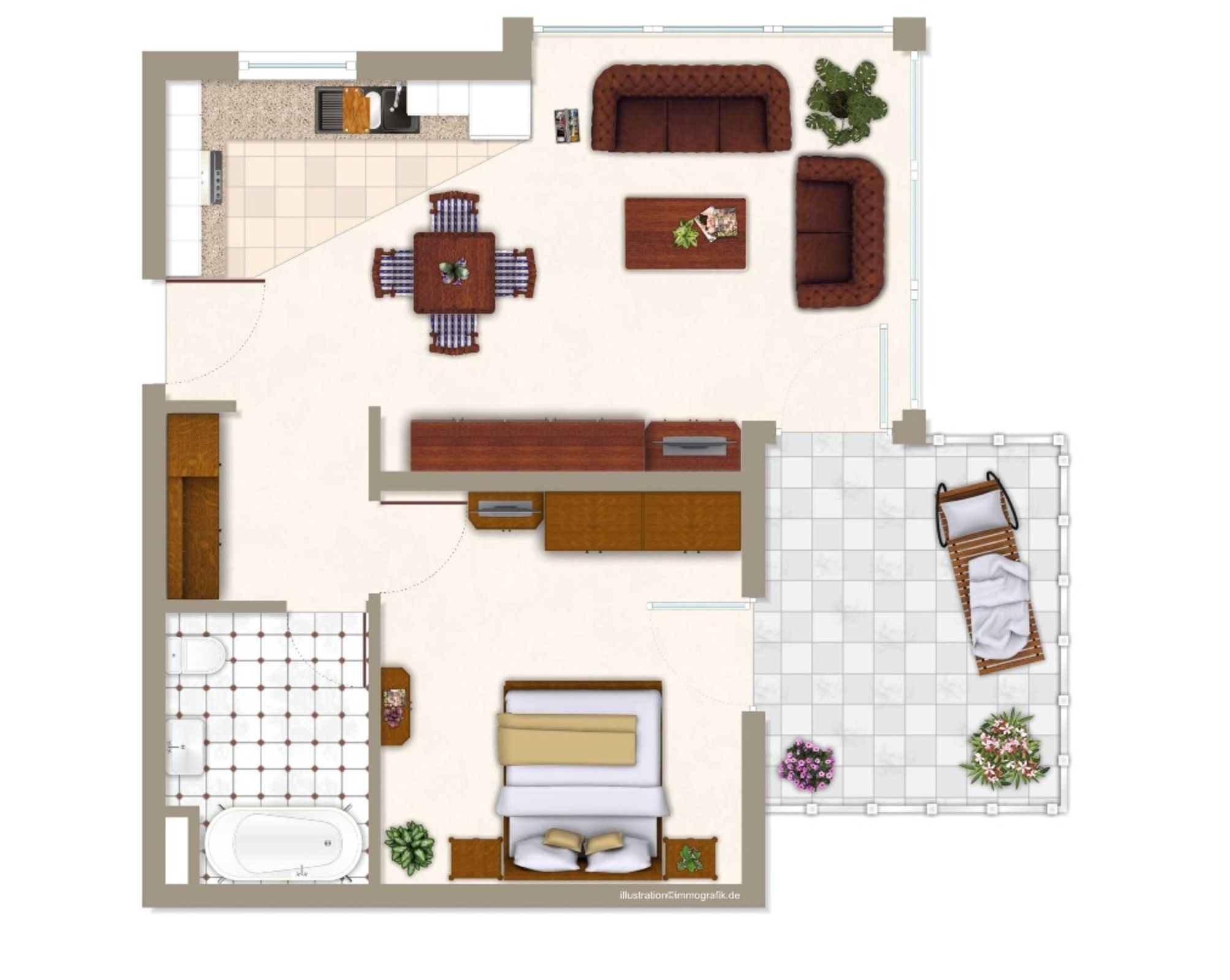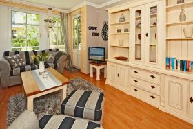 Dieses modern und hochwertig eingerichtete Appartement im Erdgeschoss mit Terrasse des Hauses ist mit allen Annehmlichkeiten ausgestattet. Ihnen stehen neben einem Schlafzimmer mit Doppelbett, ein geschmackvoll eingerichtetes Wohnzimmer mit Schlafcouch für die dritte und vierte Person zur Verfügung. Im Badezimmer finden Sie eine Badewanne mit einer integrierten Dusche. Im Garten befindet sich ein Spielplatz für die Kleinen.
