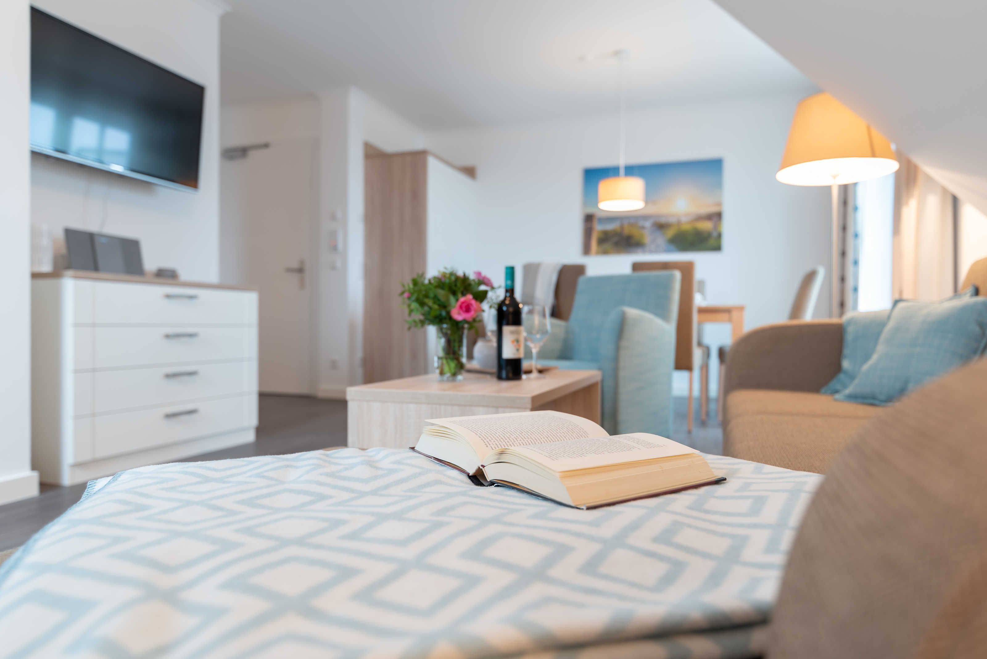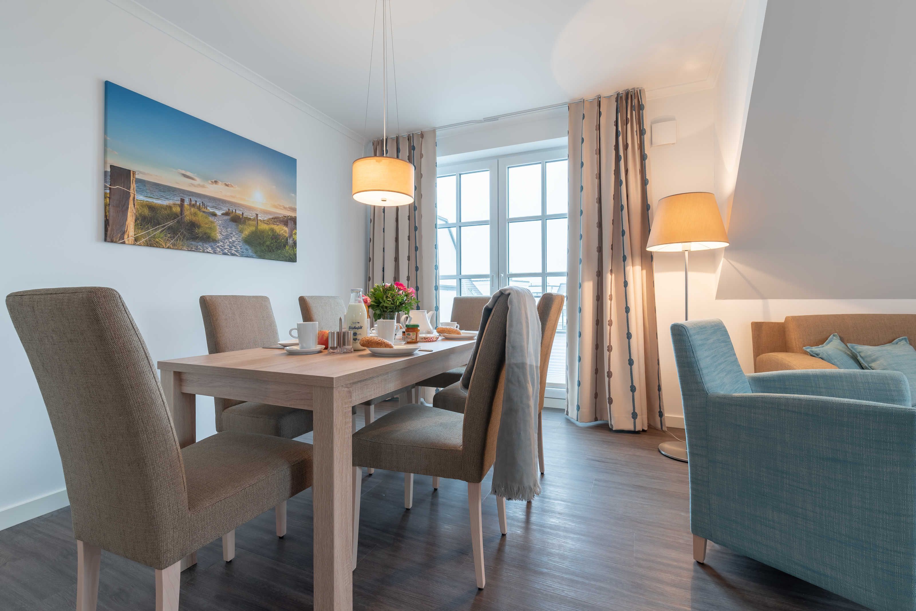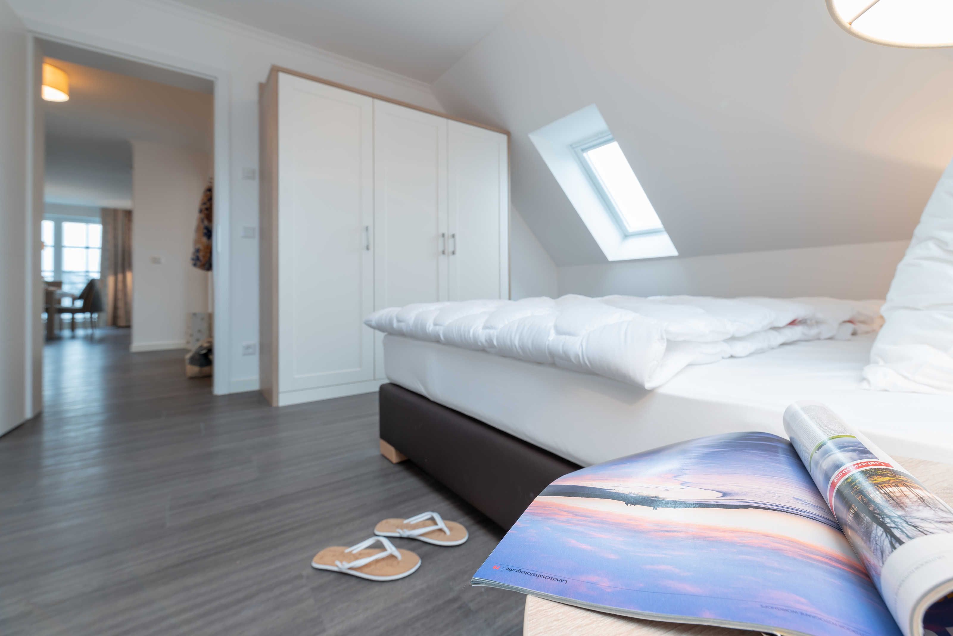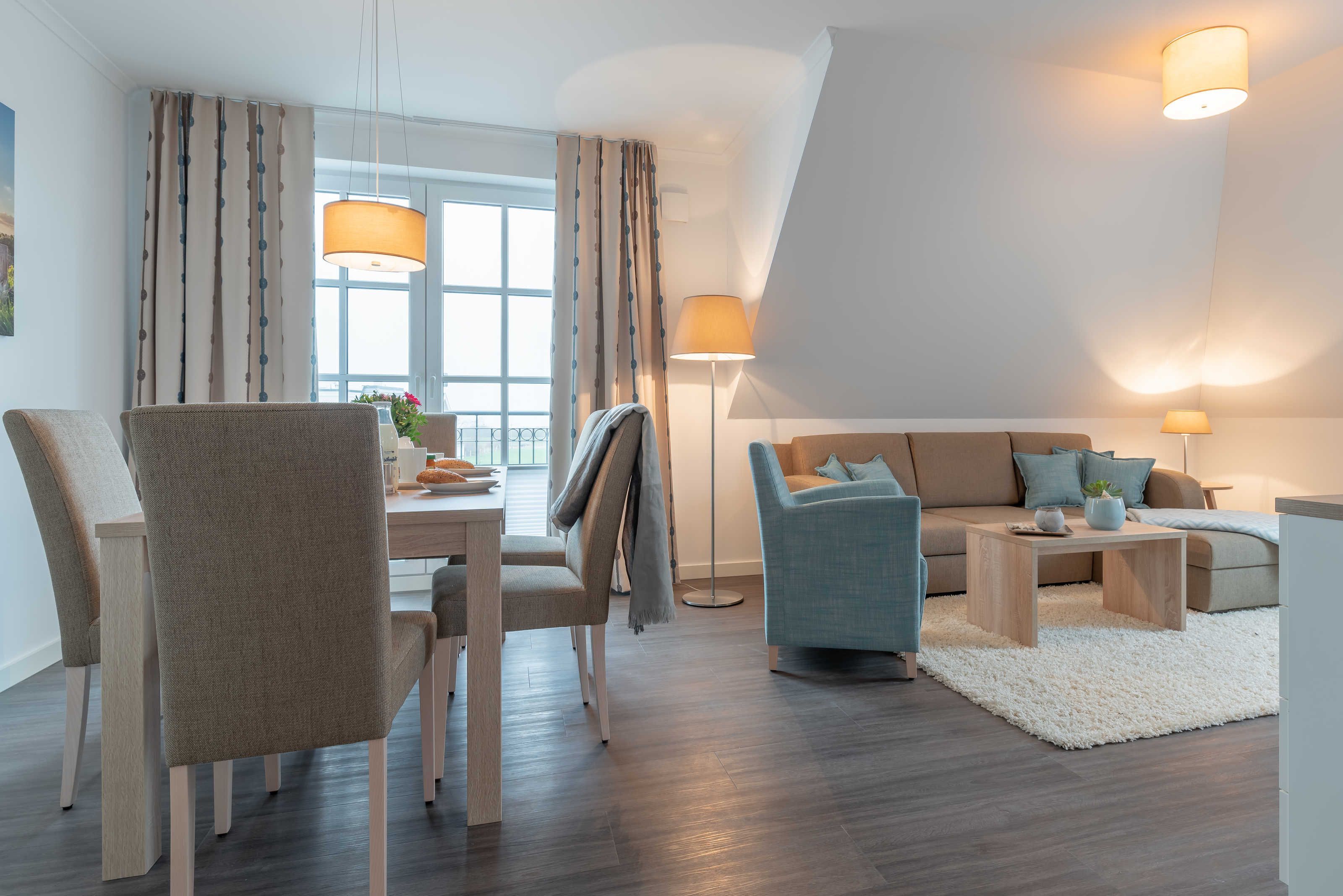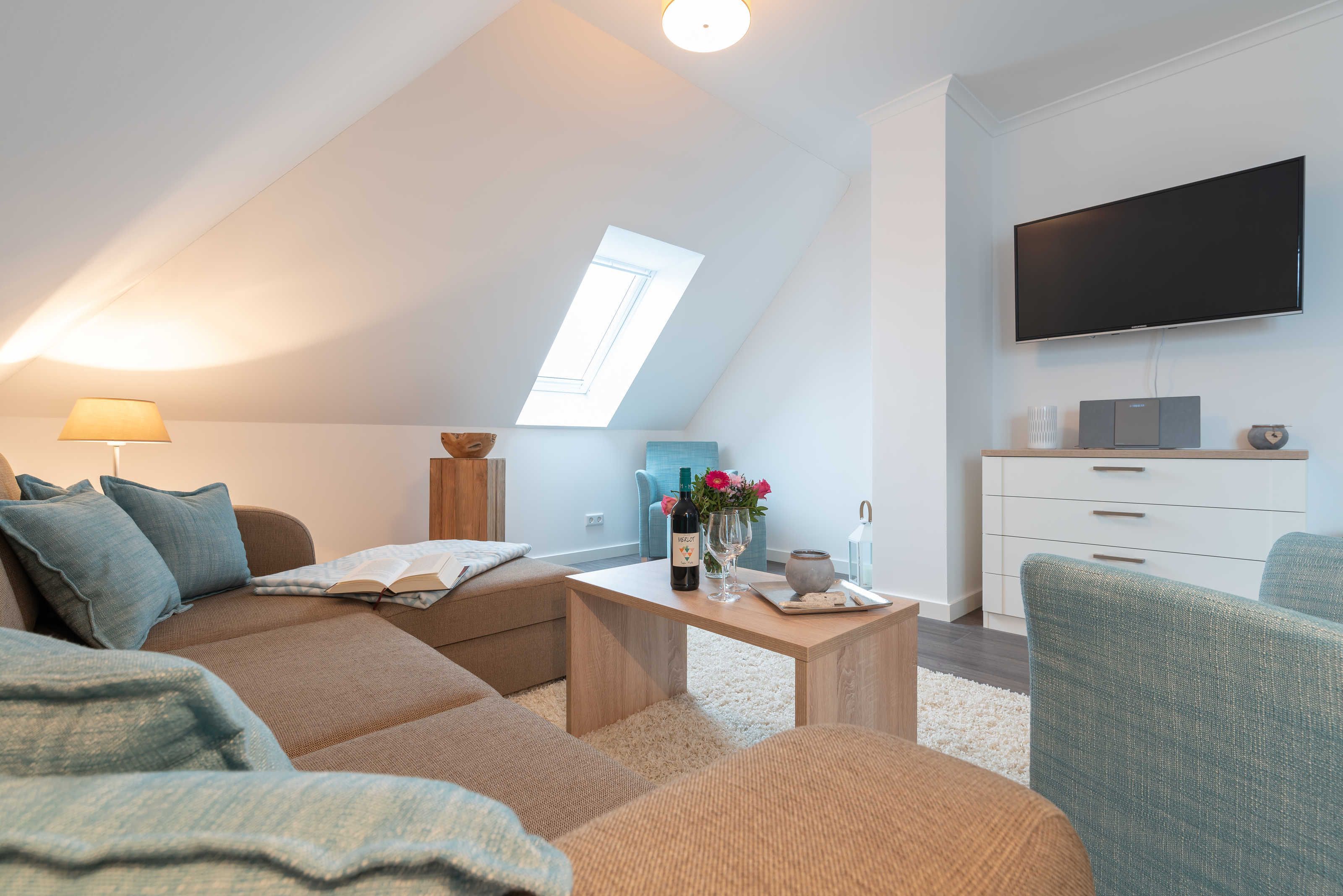 Die große Dachgeschosswohnung mit Meerblick und zwei Balkonen ist das perfekte Urlaubsdomizil für Gruppen mit bis zu vier Erwachsenen und zwei Kindern (bis 12 Jahre). Ob mit Freunden oder der Familie in diesem exklusiv und modern eingerichteten Drei-Zimmer-Apartment ist Entspannung und Erholung vorprogrammiert.