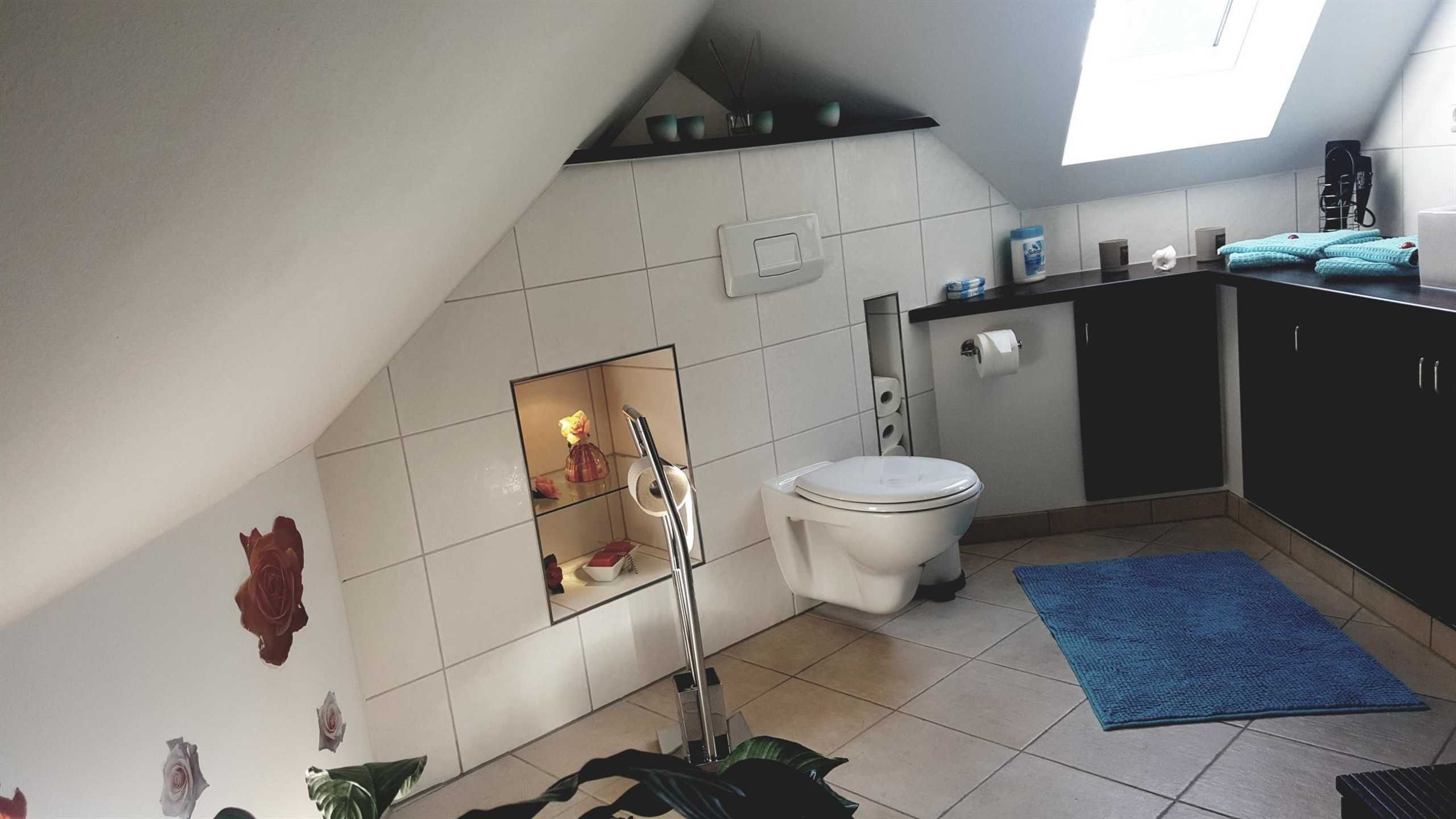 Das moderne Duschbad liegt separat im gleichen Flur im Obergeschoss und ist selbstverständlich zur Alleinnutzung für Gäste des Appartements. Bademäntel stehen lostenlos zur Verfügung.