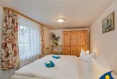Den Schlafraum mit dem großen Doppelbett erreichen Sie über die Küche. Hier stehen zudem genügend Ablagemöglichkeiten für Ihre Urlaubsgarderobe bereit.