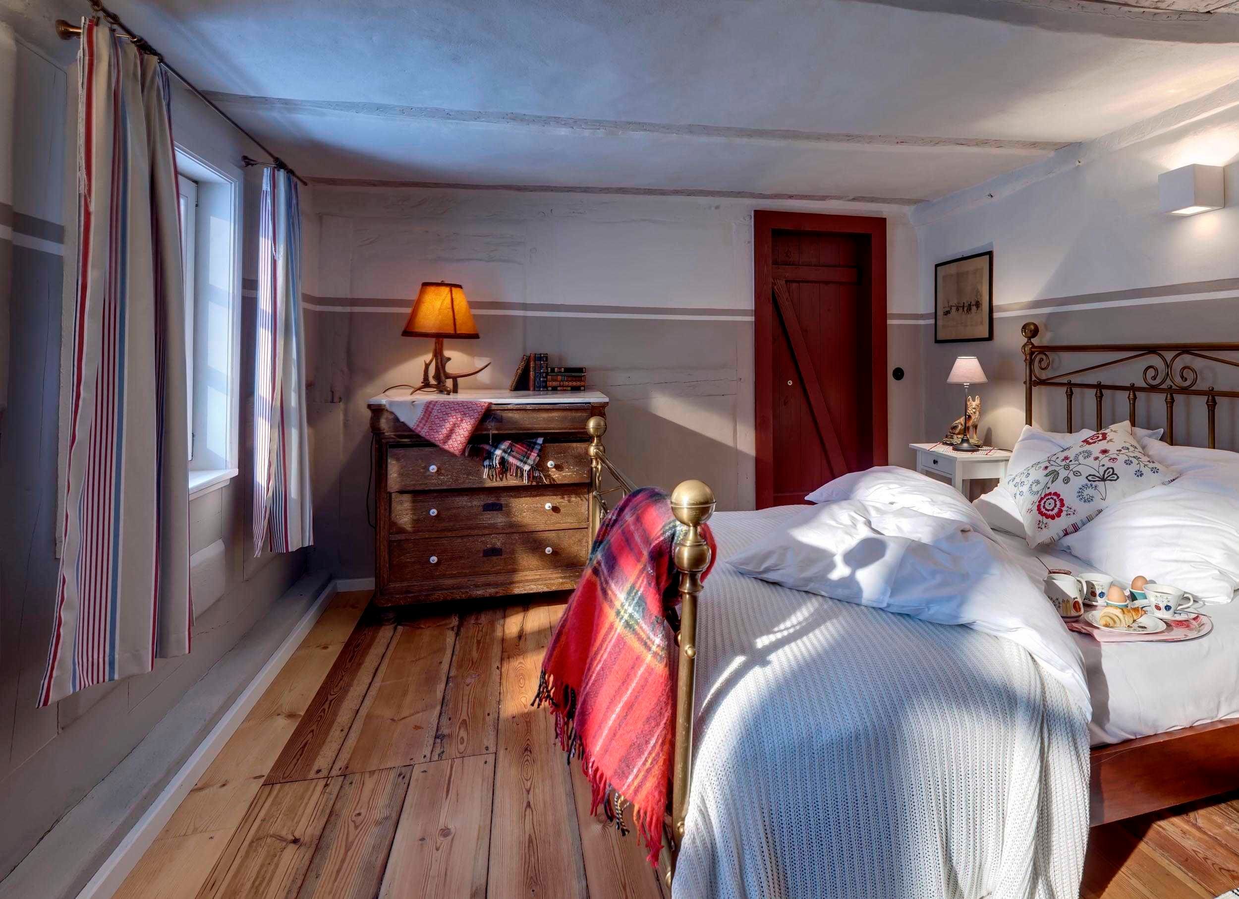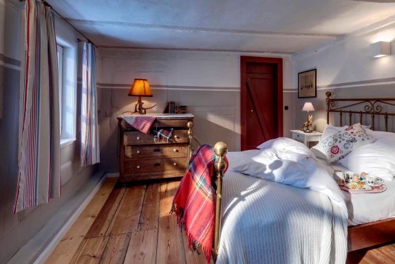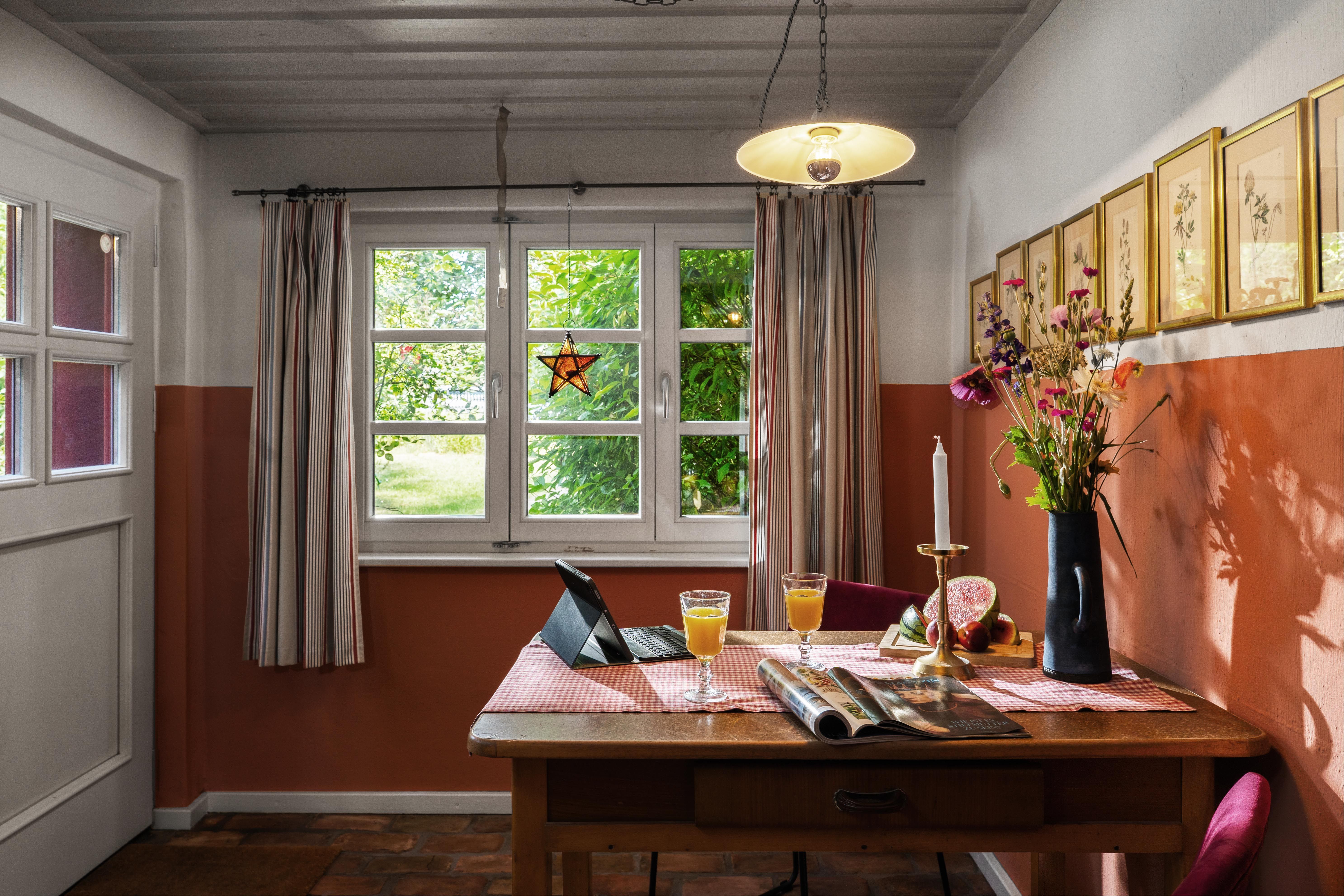 Die Geschichte des Hauses geht bis in die Schwedenzeit Pommerns zurück. In der Mitte des 18. Jahrhunderts ließ Friedrich der Große in Pommern Kolonisten ansiedeln, die das Land urbar machen sollten. Viel Schönes am und im Haus erinnert noch an diese Zeit. Von Anfang an war uns wichtig, so viel wie möglich des besonderen Charmes des Roten Schweden zu erhalten. So konnten bei der Instandsetzung des Hofs im Jahr 2011 sowohl das Reetdach des Haupthauses als auch das reetgedeckte Scheunendach vollständig erneuert werden. Die rückseitige Fachwerkfassade wurde freigelegt und erinnert heute wieder an die Handwerkskunst vergangener Zeiten. Die Holz- und Backsteinfassade erhielten einen frischen, schwedenroten Anstrich. Im Haus wurden die Lehmwände neu verputzt, die Dielenböden von alten Lackschichten befreit und anschließend geölt, sämtliche Elektroinstallationen auf den neuesten Stand gesetzt, und ein helles, mit marokkanischen Zementfliesen ausgestattetes Duschbad eingebaut. Die seltene historische Esse wurde mit einer modernen, zeitgemäßen Küchenzeile ausgestattet.