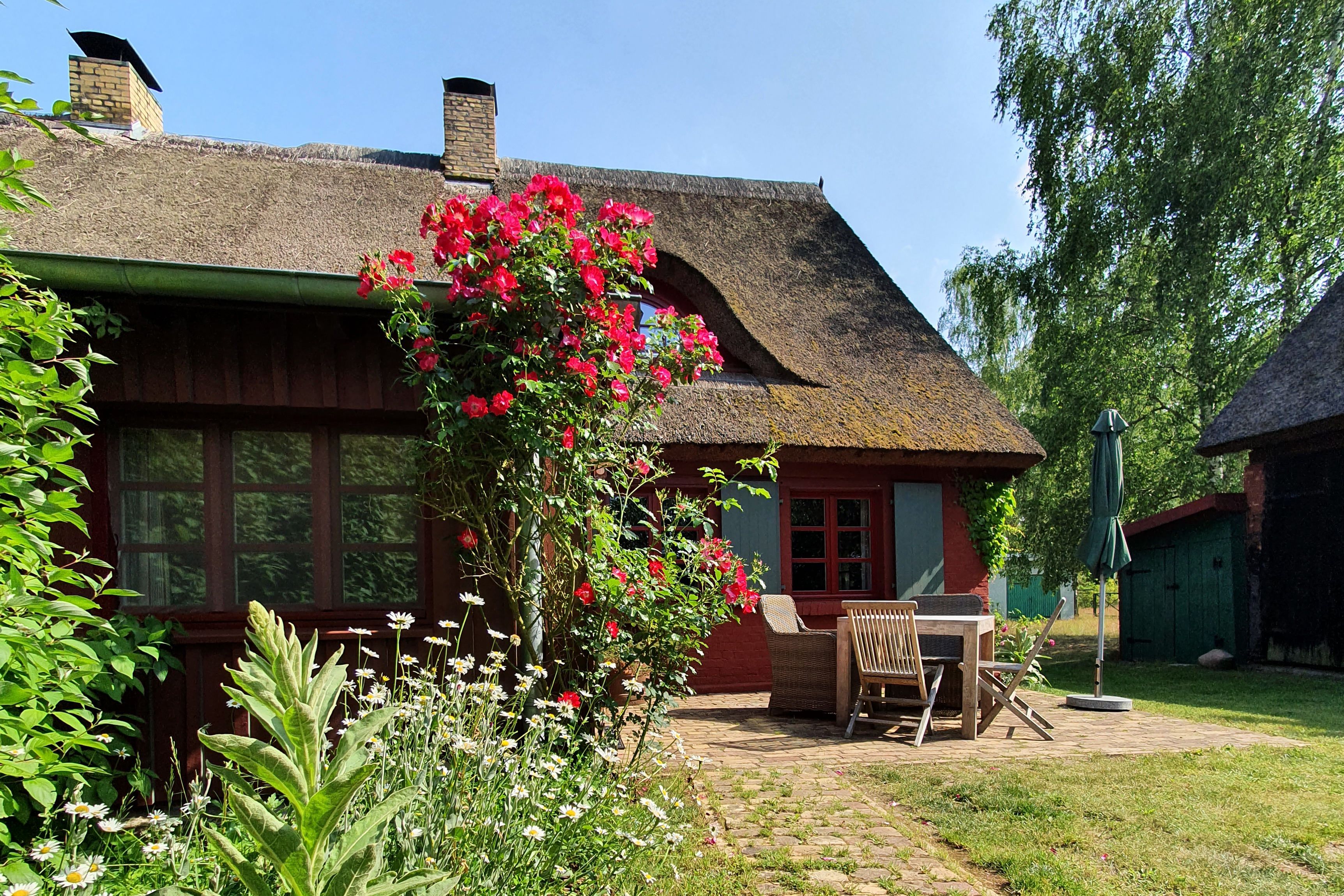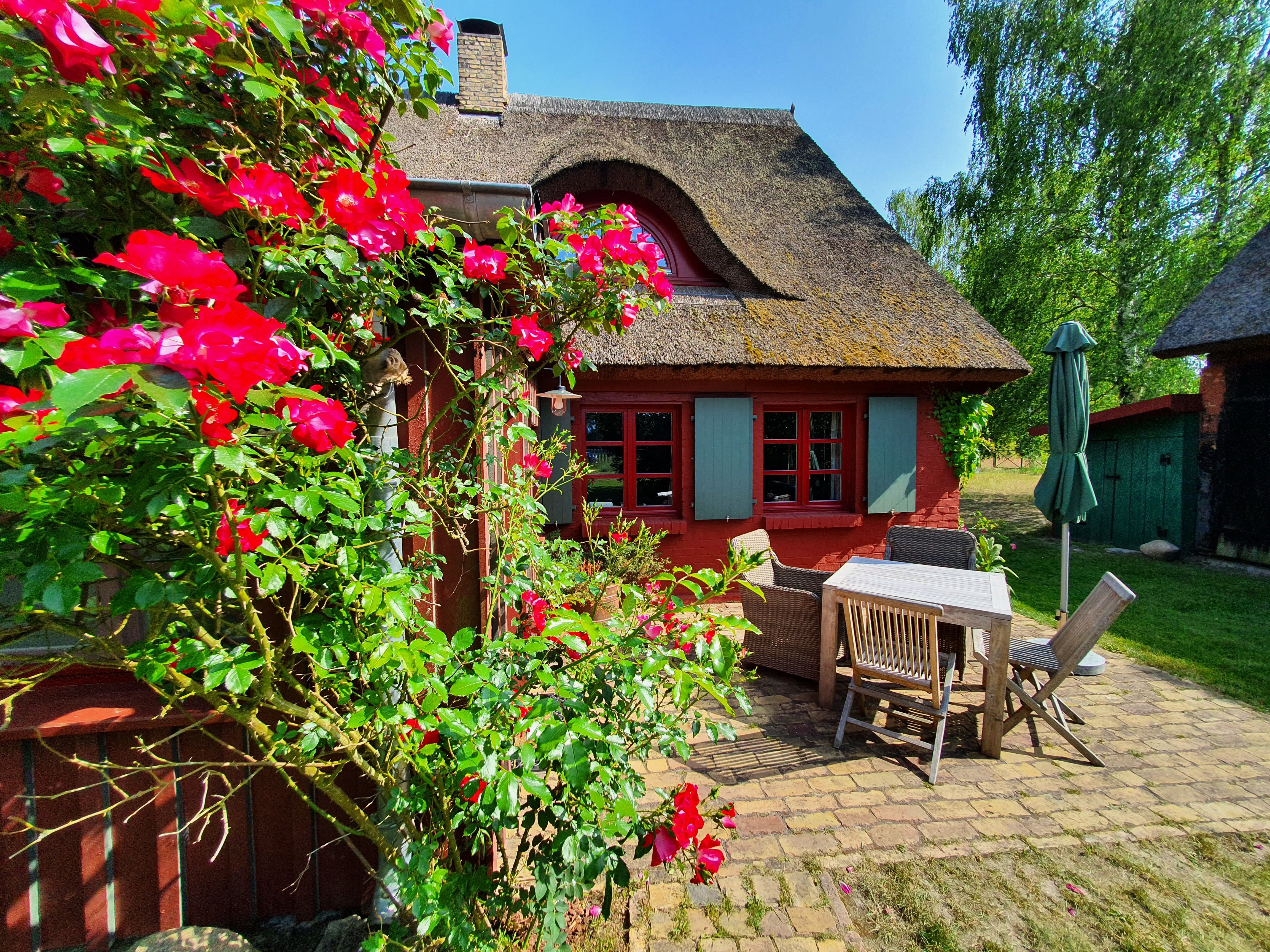 Unser Ferienhaus Roter Schwede mit seinem besonderen Charme, den individuell ausgestatteten Räumen mit antiken, zum Teil noch im Original erhaltenen und liebevoll restaurierten Möbeln wird Sie begeistern. Die leicht unregelmäßige Struktur der mit Hand verputzten Lehmwände, der Duft und die Maserung der geölten Dielen und die in Würde gealterten Fachwerkbalken sind nicht nur für Freunde historischer Gebäude etwas ganz Besonderes. Im großen, komplett umzäunten Garten, der neben der mit Teakmöbeln ausgestatteten Sonnenterrasse diverse andere Rückzugsorte bietet, kommen die Liebhaber eines naturnah und liebevoll gestalteten Gartens voll auf ihr Kosten. Und die hintere Gartenpforte führt auf verschlungenen Pfaden zu einem versteckten Naturlehrpfad und Radwanderweg, der Sie fernab der befahrenen Straßen durch die Ueckermünder Heidelandschaft in die nahegelegenen Nachbarorte des Riether Winkels führt, nach Ludwigshof und weiter nach Rieth ans Wasser.