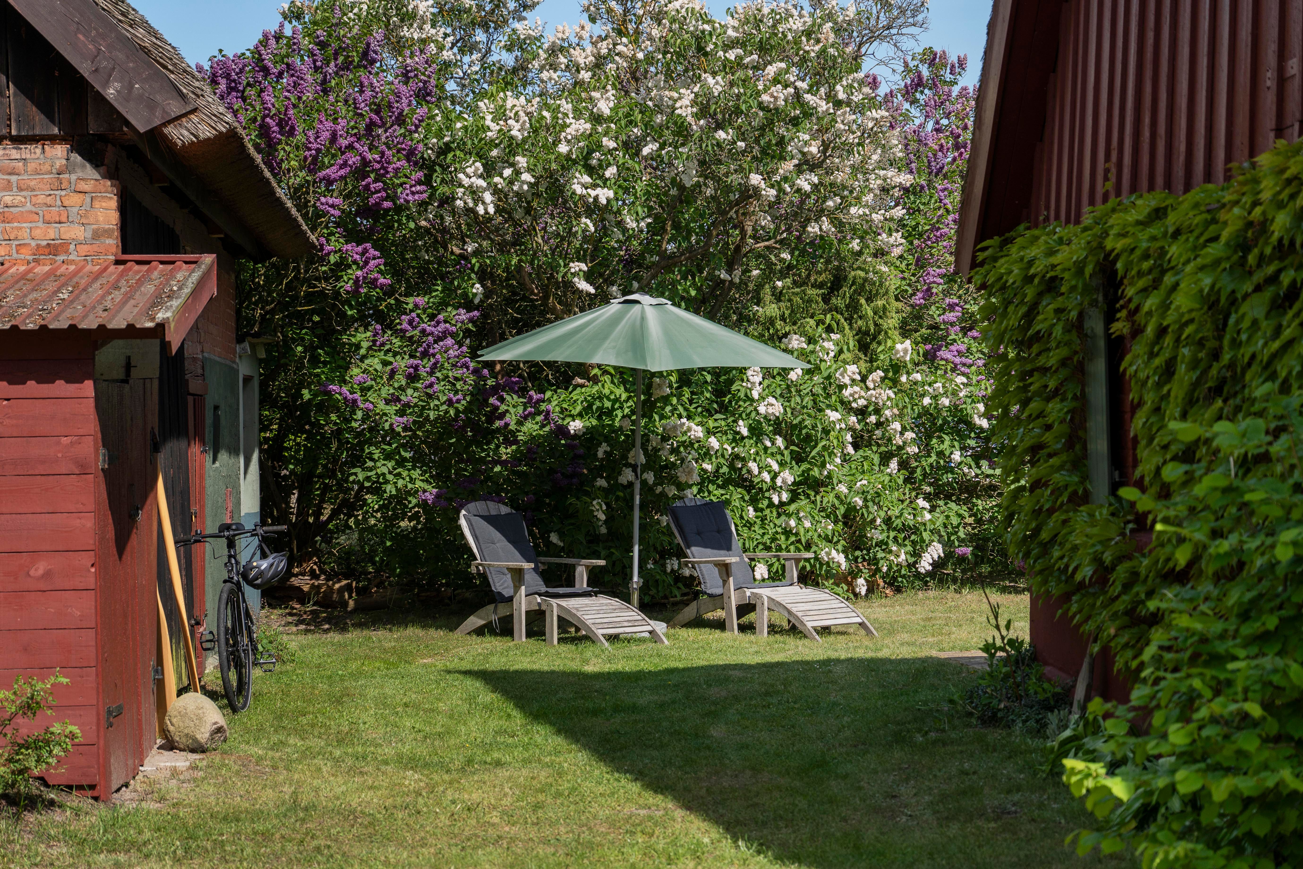 Vor dem Haus liegt die Südterrasse mit Teakholzmöbeln. Im großen Bauerngarten, der das Haus umgibt, warten weitere Rückzugsecken zum Lesen oder Dösen auf Sie. Hinter dem Grundstück beginnt ein kleiner Radrundweg, welcher zum Ahlbecker Fenn mit seinem Aussichtsturm und weiter zum Neuwarper See mit seiner Badestelle führt.