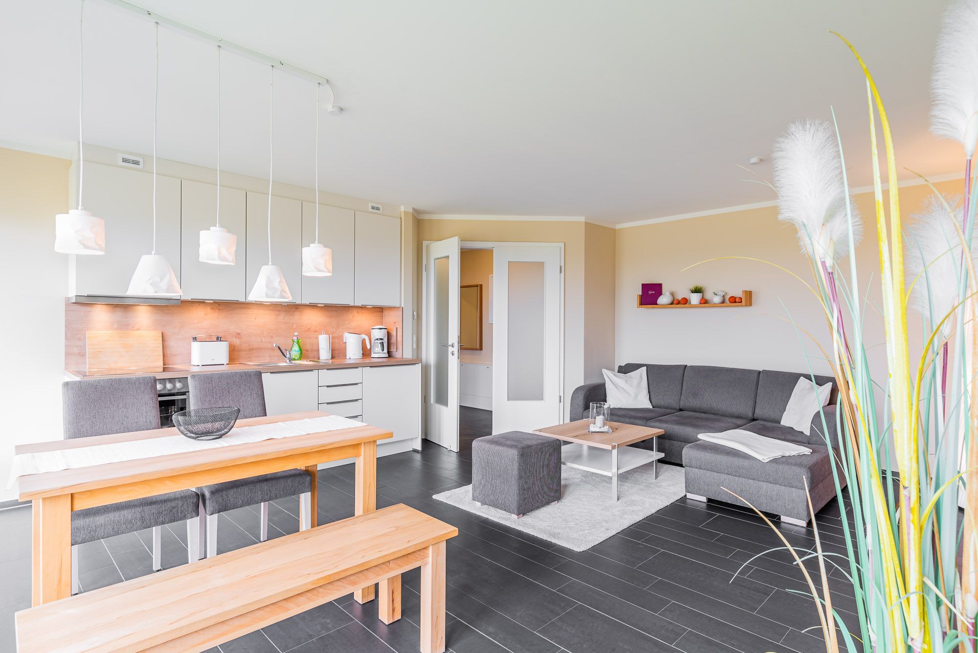 In der 60m² großen Wohnung 1.2 im Haus Calmsailing ist der Blick auf die rauschende Ostsee, dem davorliegenden Weideland und der Strandpromenade durch die Nord-Lage garantiert. Die Zwei-Zimmer Wohnung verfügt über einen kostenfreien Tiefgaragenstellplatz. Ein Aufzug erleichtert die An- und Abreise. Bitte beachten Sie die Durchfahrtshöhe von max. 1,90 m. Am Eingang des Objekts befinden sich zudem Fahrradständer.