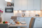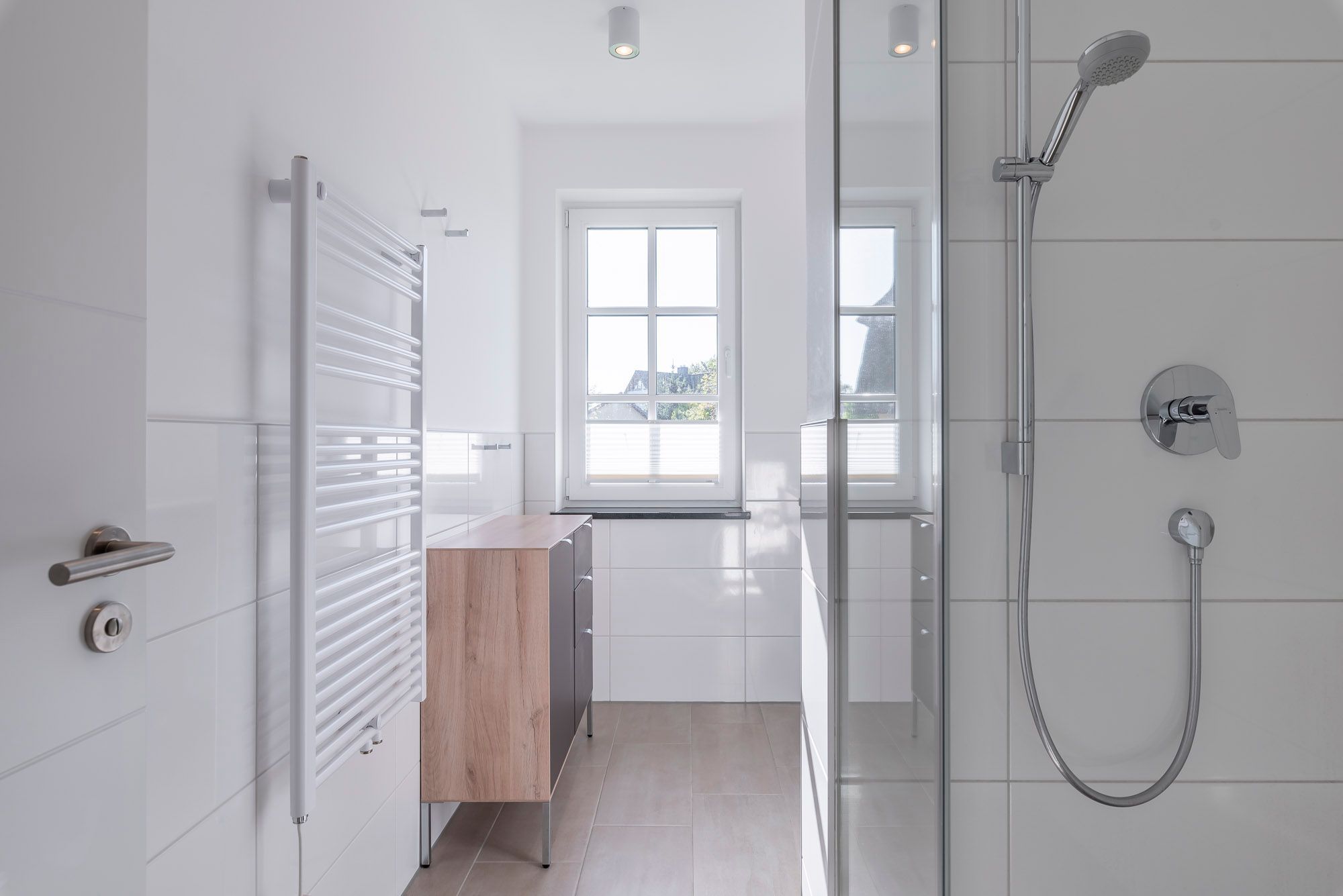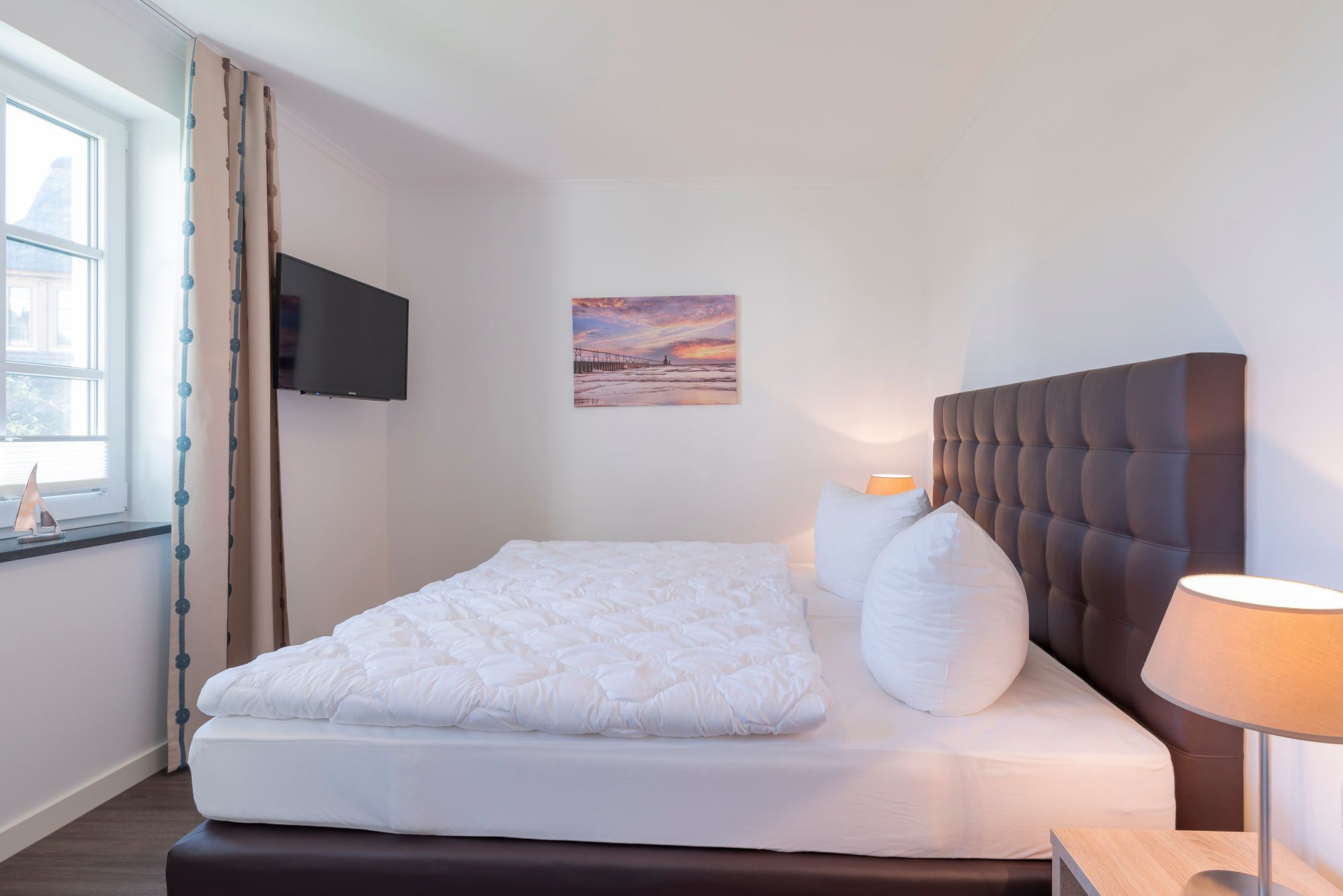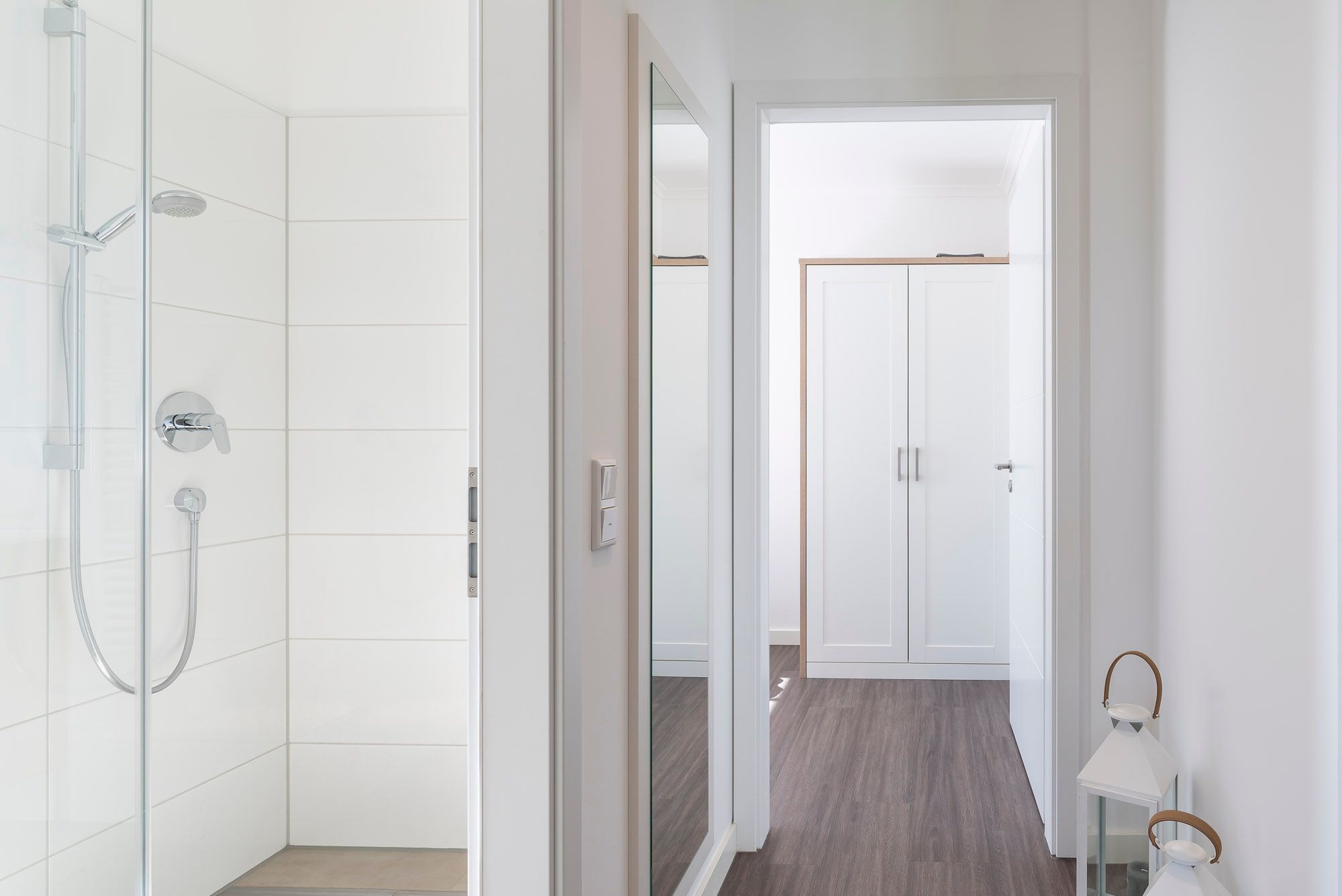 Die moderne Küche bietet jeden Komfort. Sie ist mit hochwertigen Geräten ausgestattet, dazu gehören Backofen, Ceran-Kochfeld, Kaffeemaschine, Toaster, Wasserkocher und Kühlschrank inklusive Gefrierfach. Der helle Essbereich eignet sich perfekt zum gemütlichen Beisammensein in kleiner Runde. Die zwei Schlafzimmer sind mit bequemen Boxspringbetten und ausreichend Stauraum für Ihre Mitbringsel ausgestattet. Im modernen Wohnzimmer bietet die Couch neben gemütlichen Abenden vor dem Fernseher einen zusätzlichen Schlafplatz für die fünfte Person. Das Bad verfügt über eine ebenerdige Dusche, einen Waschtisch mit großem Spiegel und ein zusätzliches Sideboard. Vom Wohnbereich gelangen Sie auf die schön angelegte Terrasse (Ostseite) mit Blick ins Grüne. So lässt es sich früh morgens mit der Sonne am Frühstückstisch starten. Die Grünanlage auf der Südseite mit schönem Blick auf modern gedeckten Reetdachhäuser und den zugehörigen Sonnenliegen ruft anschließend zum Sonnenbaden.