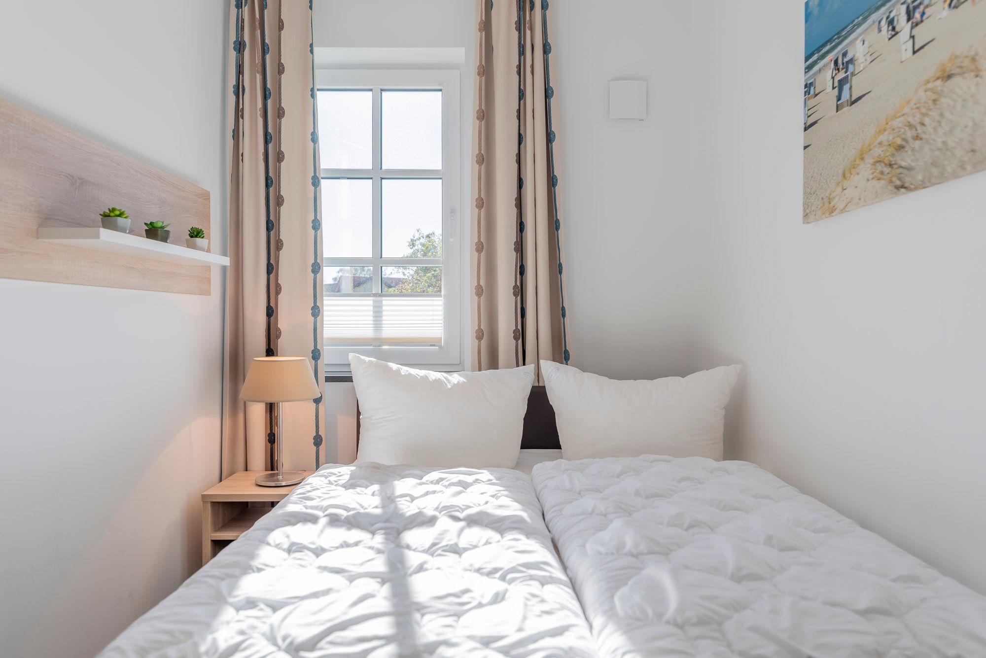 Die 58 qm große Ferienwohnung liegt nicht weit entfernt vom Naturstrand und ist für maximal fünf Personen (davon vier Erwachsene) ausgestattet. Es erwartet Sie eine liebevoll ausgestattete Drei-Zimmer-Wohnung mit Fußbodenheizung.