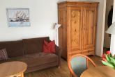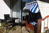 Schöne helle Ferienwohnung (ca. 40 m²) für bis zu 3 Personenmit eigener Terrasse in unmittelbarer Strandnähe. Die Wohnung hat ein Schlafzimmer mit einem Boxspring-Doppelbett sowie einen Wohn-/Essraum mitbequemer Couch (Doppelbettschlafcouch). Zur Ausstattung gehört ein SAT-Flachbild-TV und eine Stereo-Kompaktanlage. Die Küchenzeile verfügt über ein Cerankochfeld, einen Backofen, eine Mikrowelle und einen Geschirrspüler. Die nach Süd-Ost ausgerichtete Terrasse ist mit einem Strandkorb, Tisch und Stühlen und einem Sonnenschirm ausgestattet. Ein eigener PKW-Stellplatz befindet sich direkt vor dem Haus. Zum breiten Sandstrand sind es ca. 80 m. Einkaufsmöglichkeiten und Restaurants sind fußläufig zu erreichen.