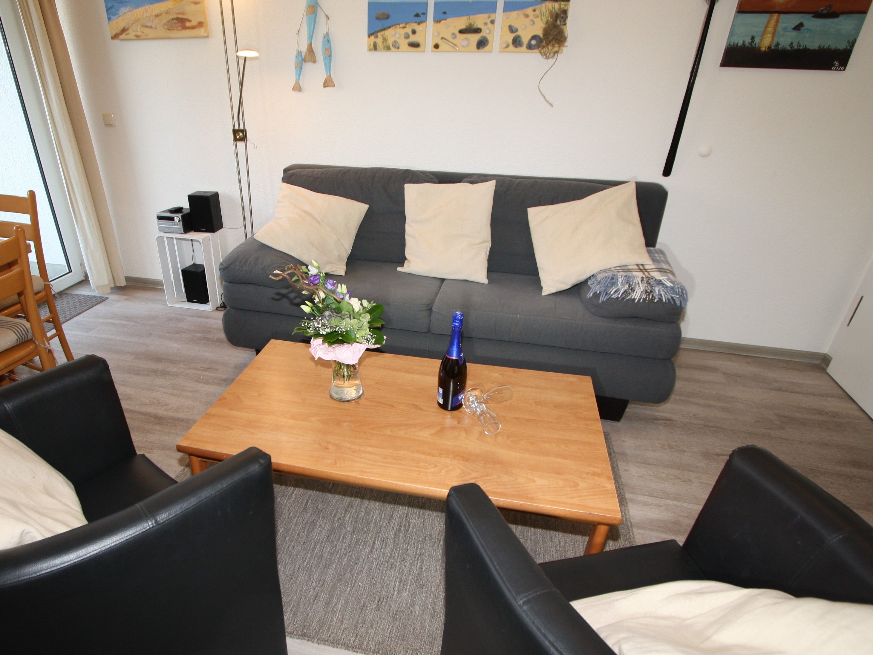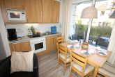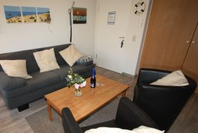 Sie wohnen in einem 2-Zimmer-Appartement für bis zu 4 Personen auf 40 m² Wohnfläche im Erdgeschoss, ein Schlafzimmer mit Doppelbett, Wohn-/Schlafraum mit bequemer Doppelbettcouch, separater Essplatz, voll ausgestatteter Küchenbereich mit Mikrowelle, Dusche/WC, Terrasse und SAT-Farb-TV. PKW-Stellplatz am Haus.