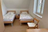 Das eine Schlafzimmer ist mit einem großen Doppelbett, Kleiderschrank und einem Radio ausgestattet. Das zweite Schlafzimmer verfügt über zwei Einzelbetten, Kleiderschrank und über einen Schreibtisch mit Sitzgelegenheit. Das Badezimmer im maritimen Flair, mit Fenster ist mit einer Dusche und einer Badewanne ausgestattet. Aus einem der Schlafzimmer kann man einen Blick auf den Gothensee erhaschen.