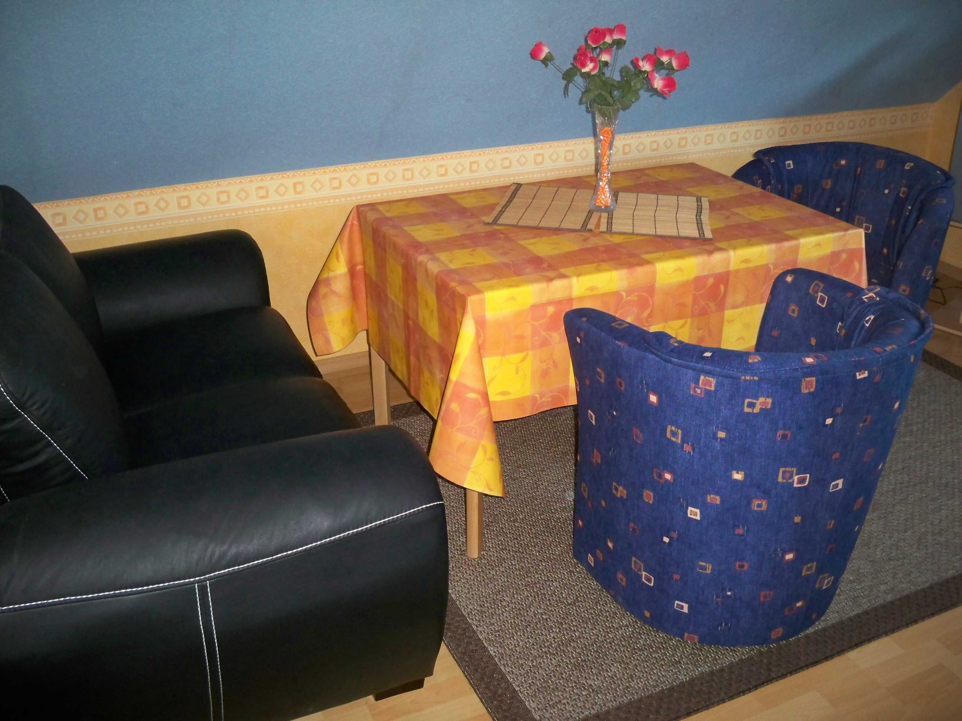 - kombinierte Wohn-Küche mit 4 Cocktailsesseln und Tisch, Herd, Backofen,