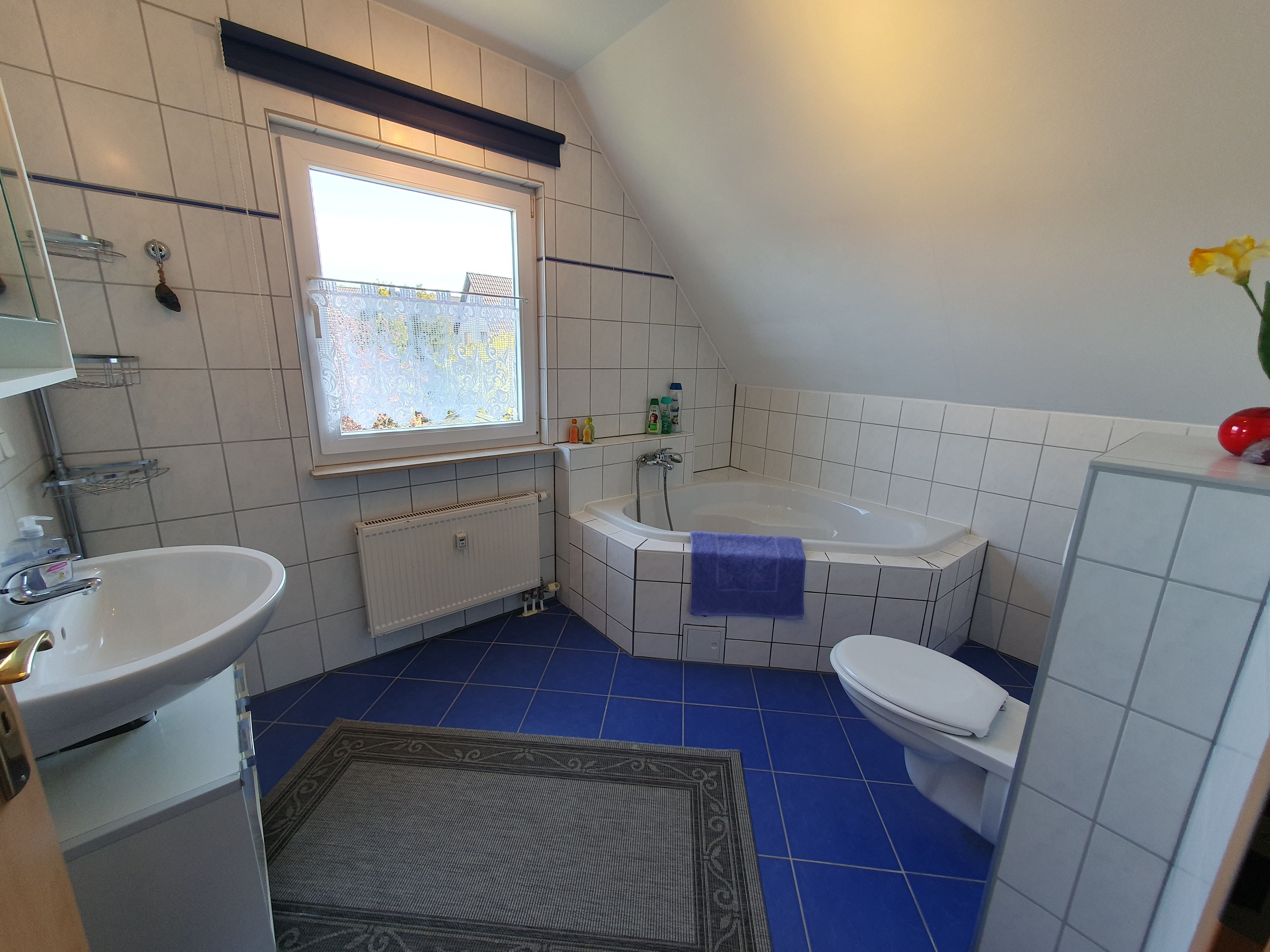 - Bad mit Eckbadewanne und WC, Haartrockner
