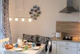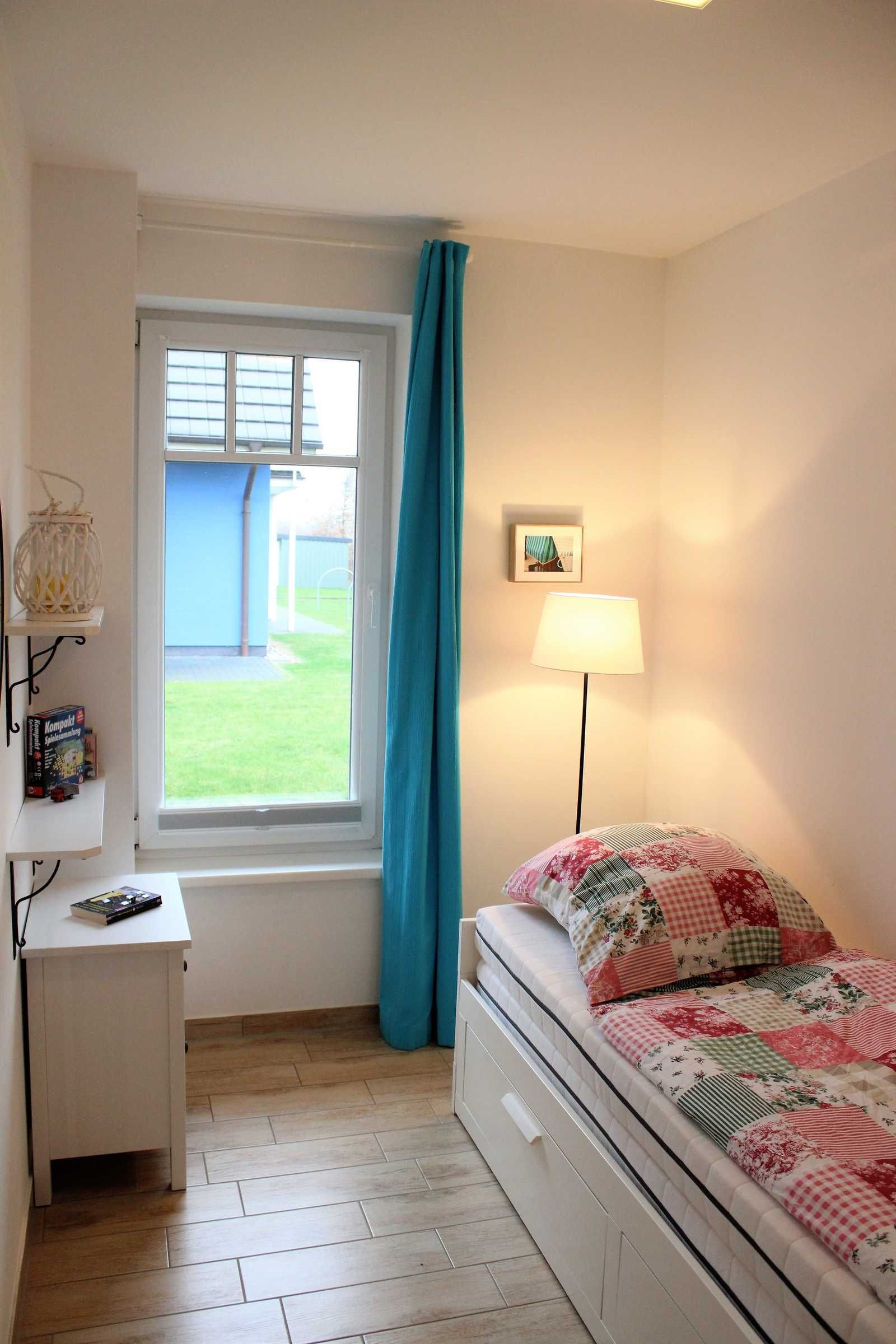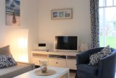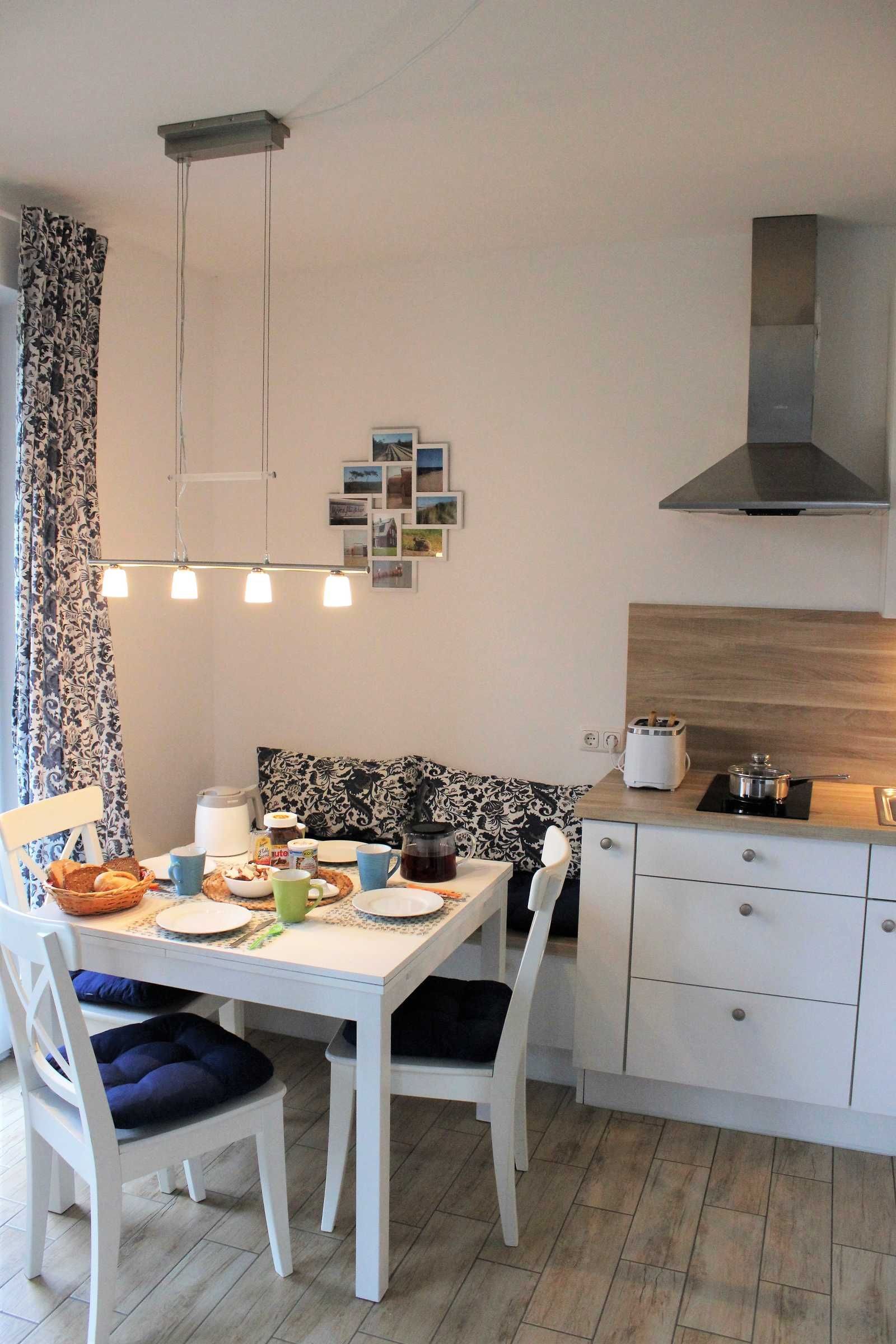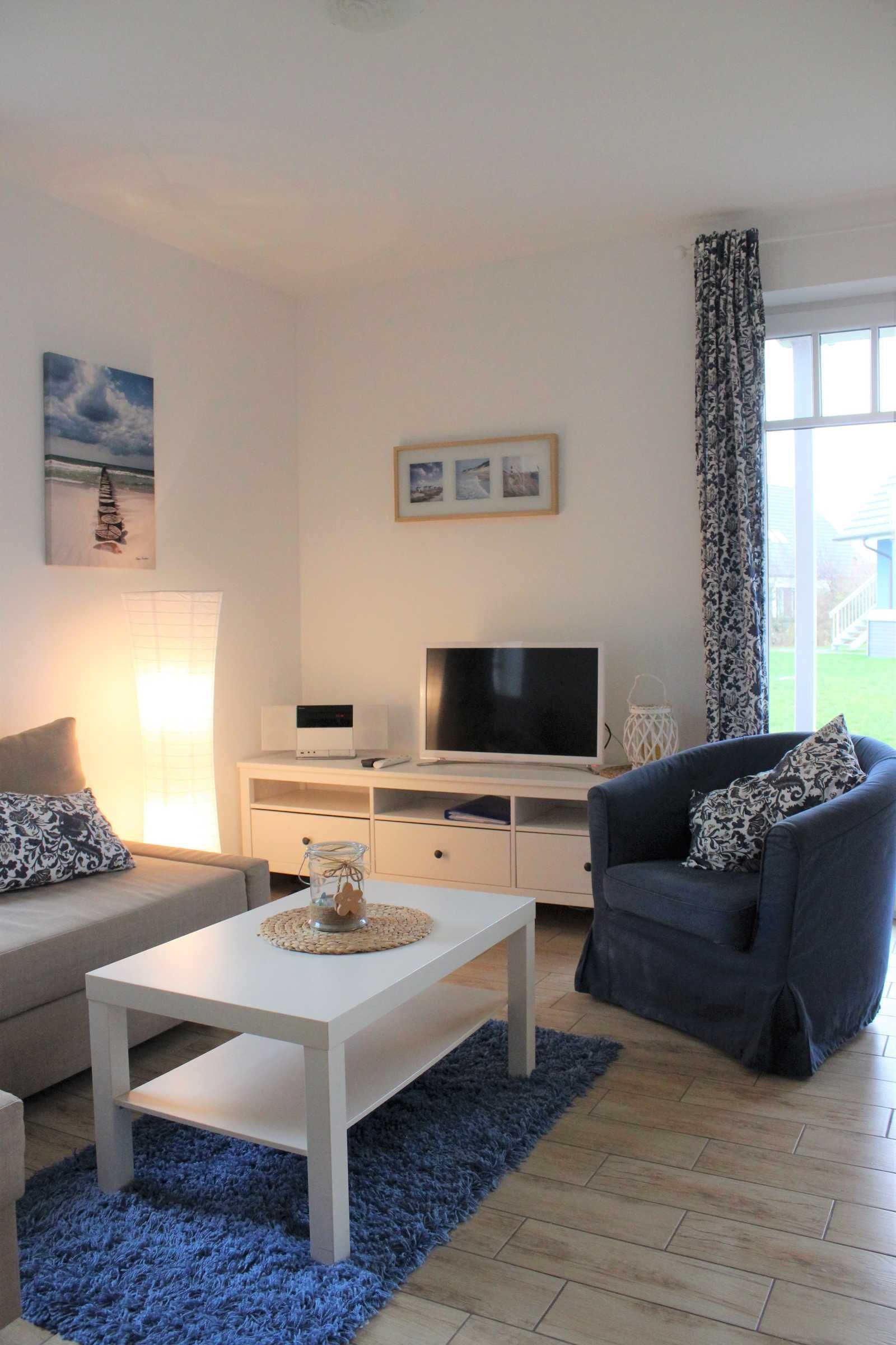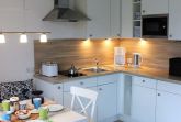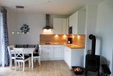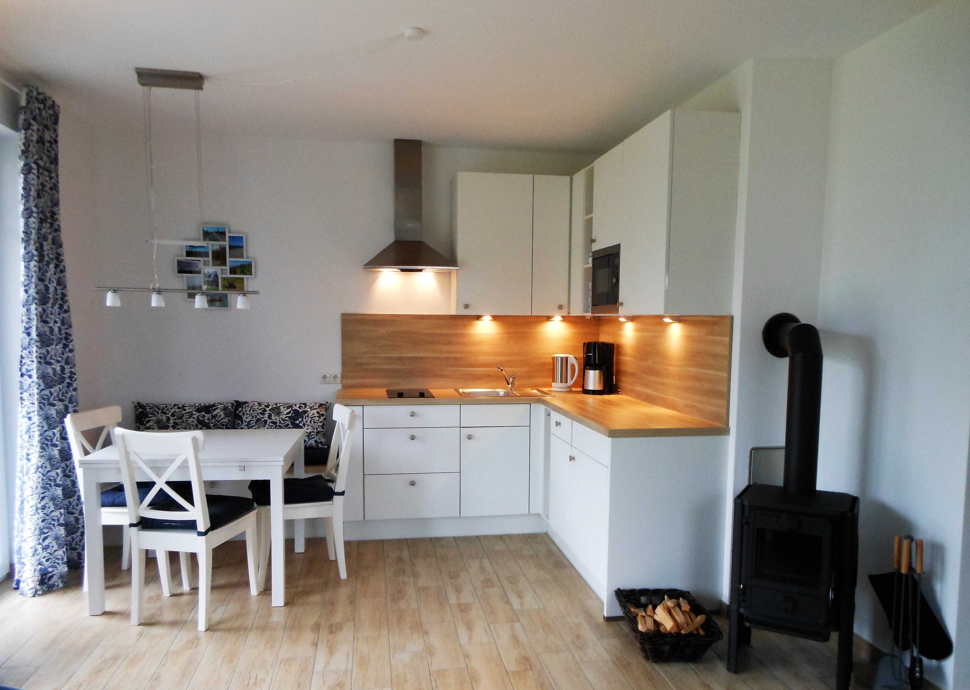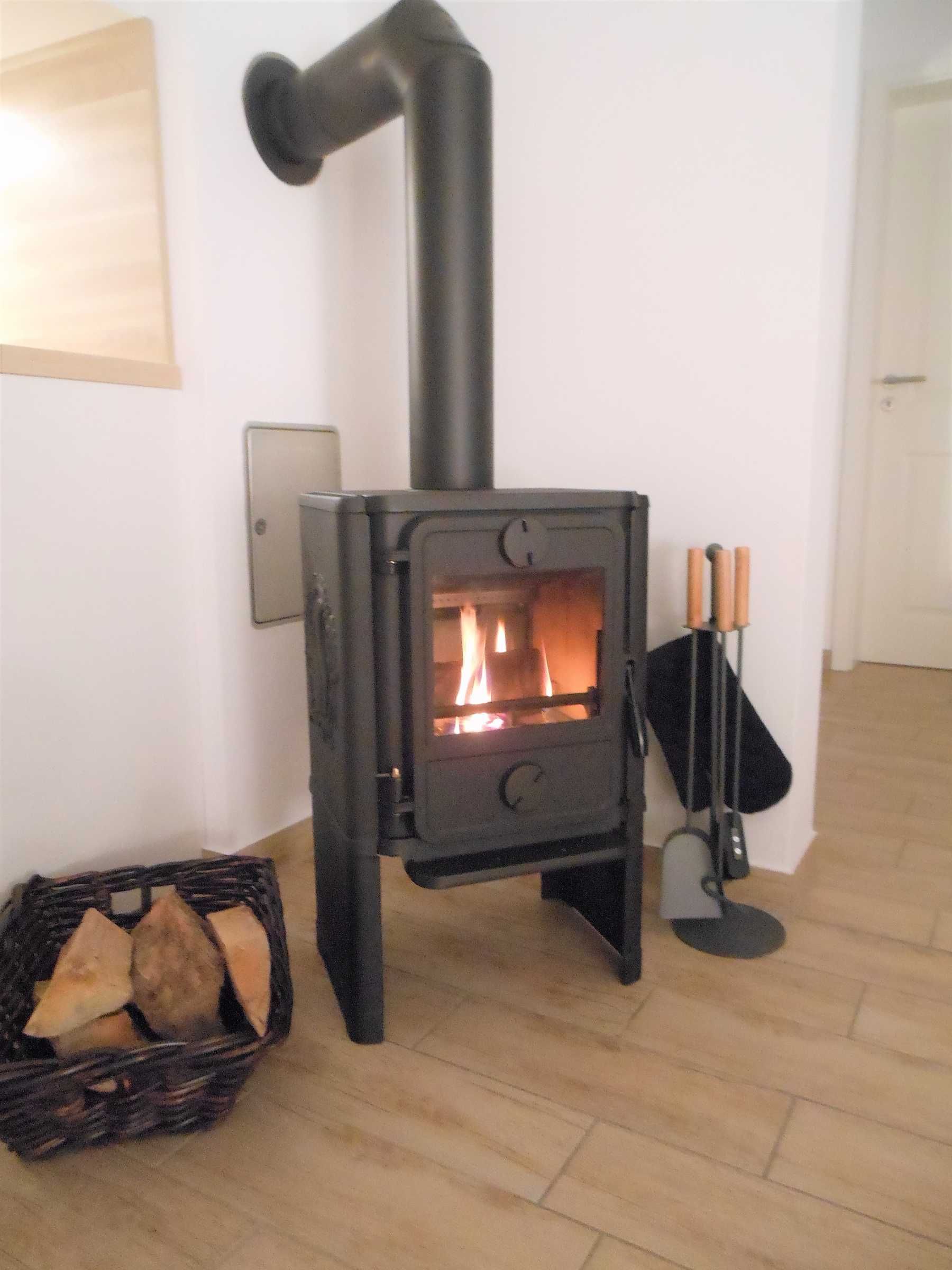 Die Ferienunterkunft verfügt über ein Schlafsofa im Wohnbereich (Liegefläche 140 x 200 cm) und zwei separate Schlafzimmer (Doppelbett 180 x 200cm und Ausziehbett mit zwei Matratzen 80 x 200 cm). Ein Wäscheset kann pro Person kostenpflichtig zugebucht werden. Für Kleinkinder sind ein Kinderreisebett und ein Kinderhochstuhl vorhanden. Die Wohnung ist komplett gefliest und mit einer Fußbodenheizung ausgestattet. Zusätzlich kann der Kaminofen im Wohnbereich für wohlige Wärme sorgen (Brennholz muss selbst organisiert werden). In den hellen Wohn-/Essbereich ist eine moderne Küche mit Kühl-/Gefrierkombi, Mikrowelle, Cerankochfeld, Spülmaschine, Kaffeemaschine, Wasserkocher und Toaster integriert. Zur technischen Ausstattung der Unterkunft gehören zudem ein Fernseher, ein CD-Player, ein DVD-Player und eine Stereoanlage. Das Bad ist mit einer ebenerdigen Dusche ausgestattet.