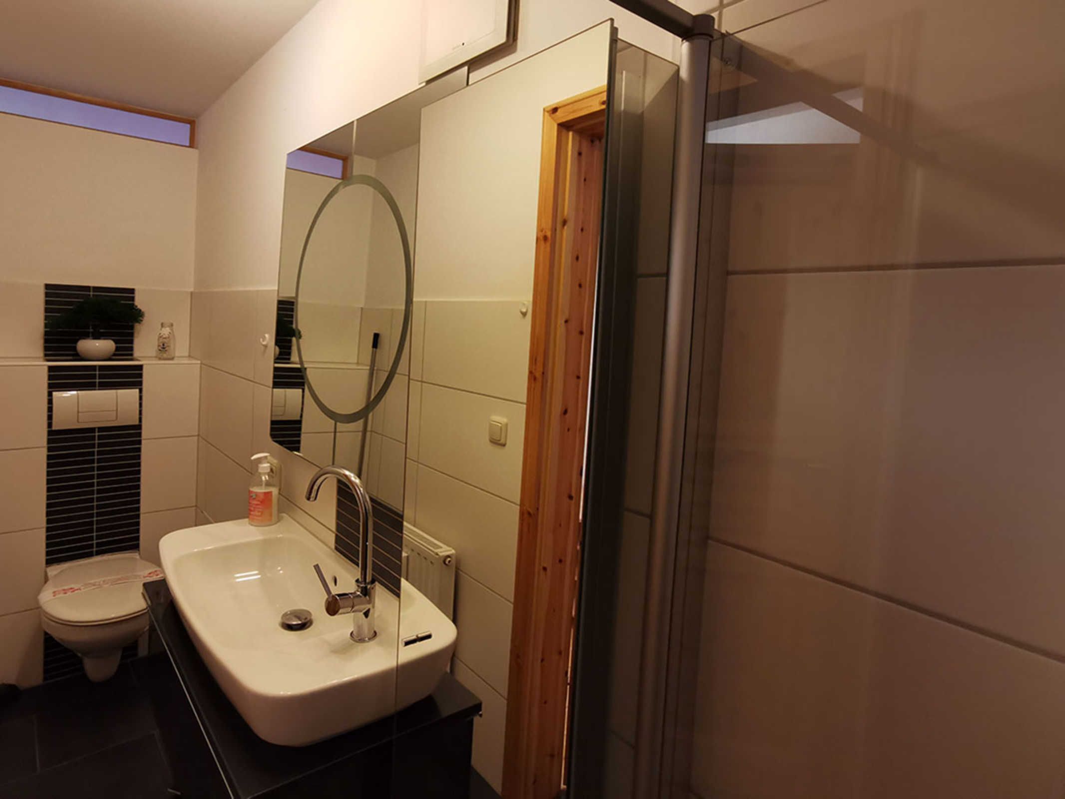 Bad: innenliegend mit Dusche, Waschbecken, WC, Ein Fön auf Nachfrage verfügbar