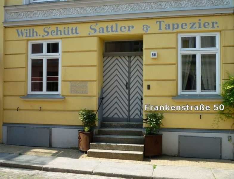 Unsere Ferienwohnung Nordwind 2, ideal für 1 4 Personen, befindet sich in der Langenstraße 41 Ecke Fischmarkt in Stralsund, über 2 Etagen im 1. OG mit Dielen & Fliesen, Küche, offenes Fachwerk, Bad mit Dusche und WC.