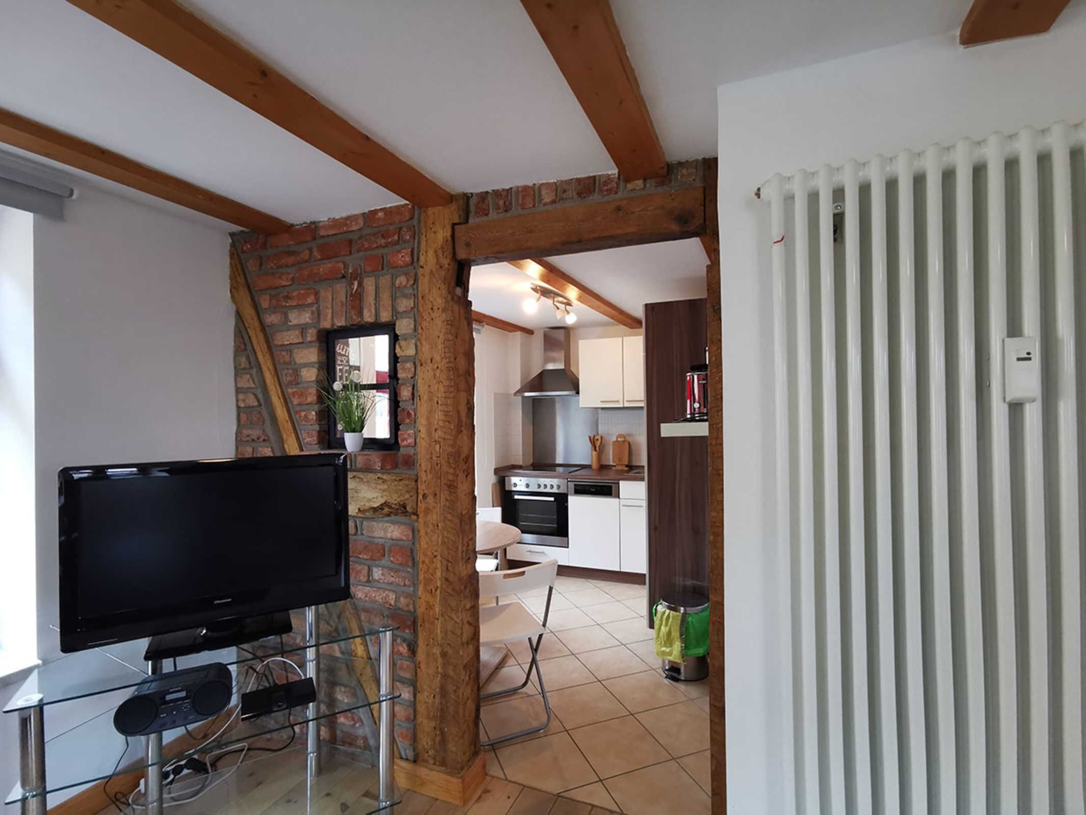 Die FeWo hat Dielen und Fliesen, eine toll eingerichtete Küche, ein offenes Fachwerk. Das Bad ist mit Dusche und WC im modernen Design.