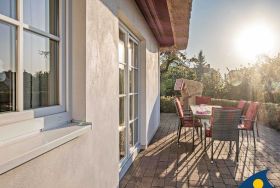 Durch das schöne, durch Hecken begrenzte Grundstück erlebt auch Ihr Vierbeiner schöne Urlaubsstunden.