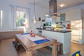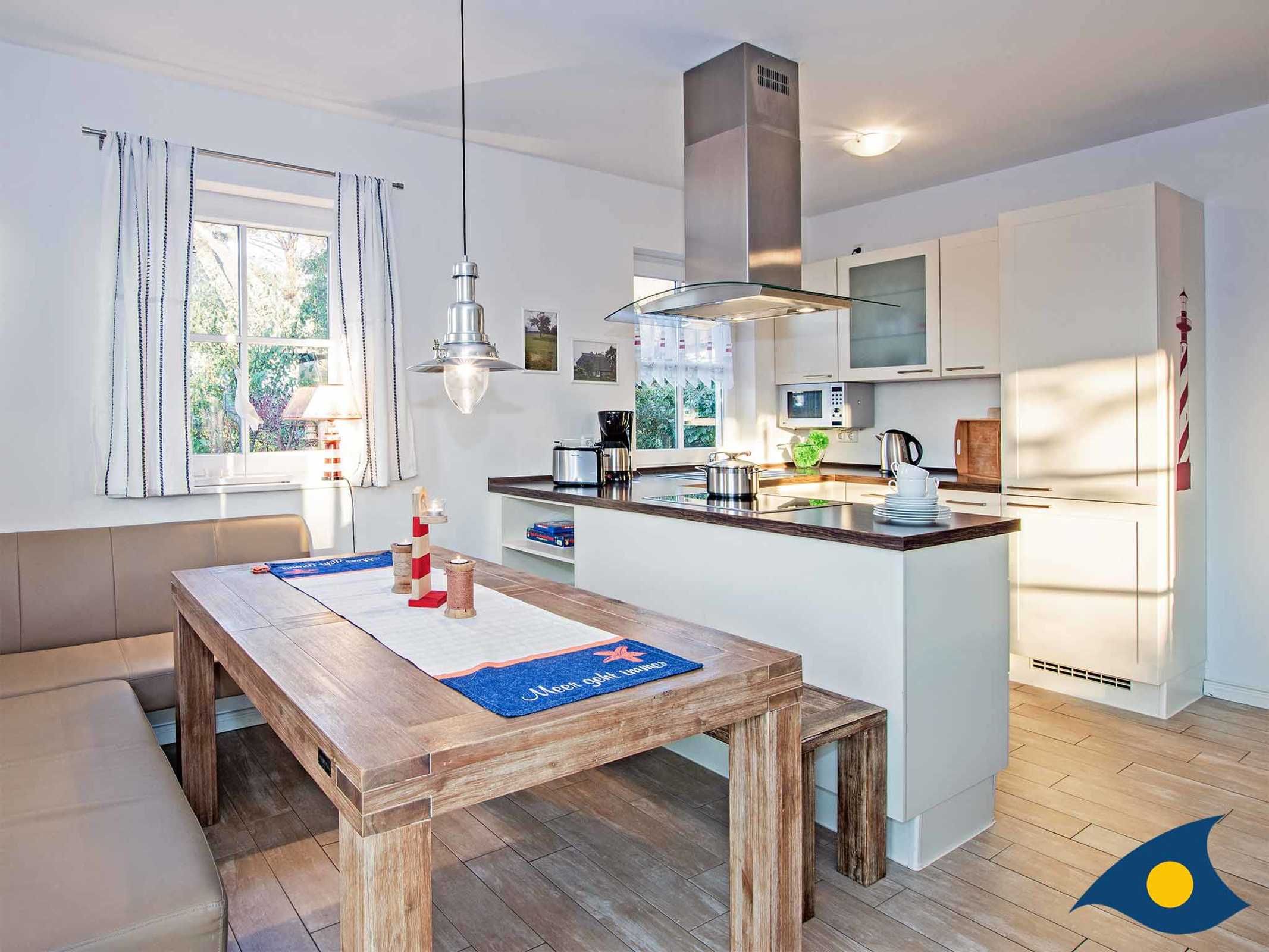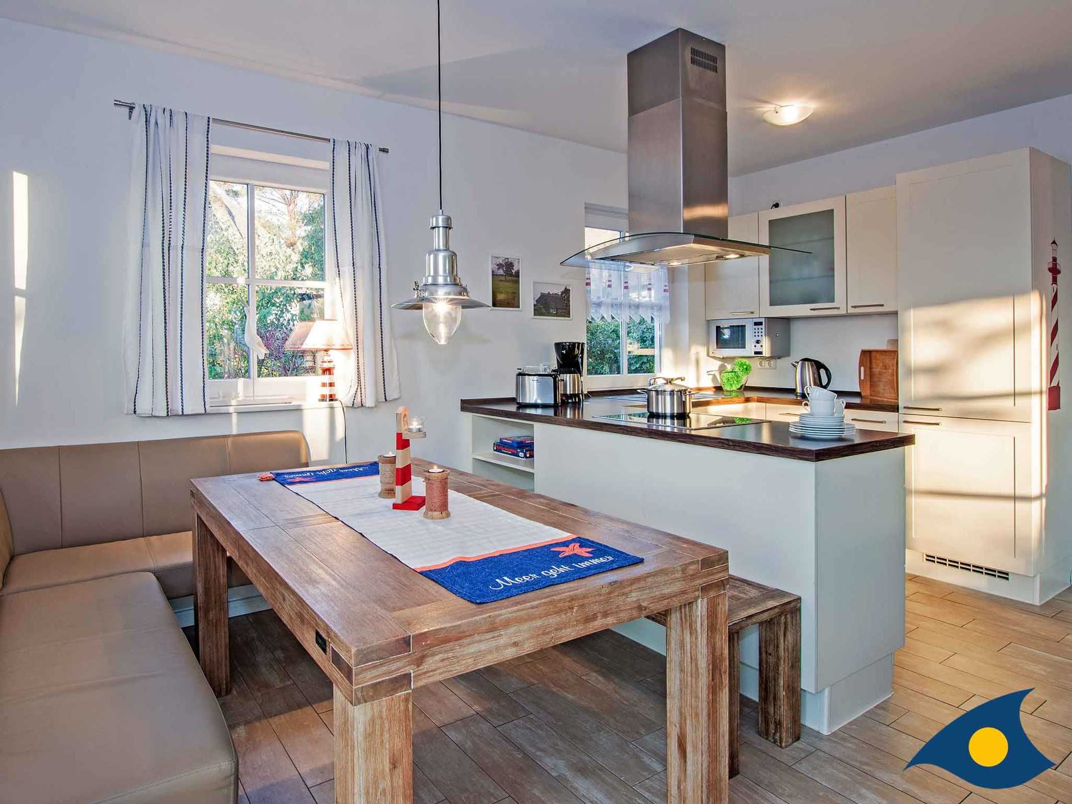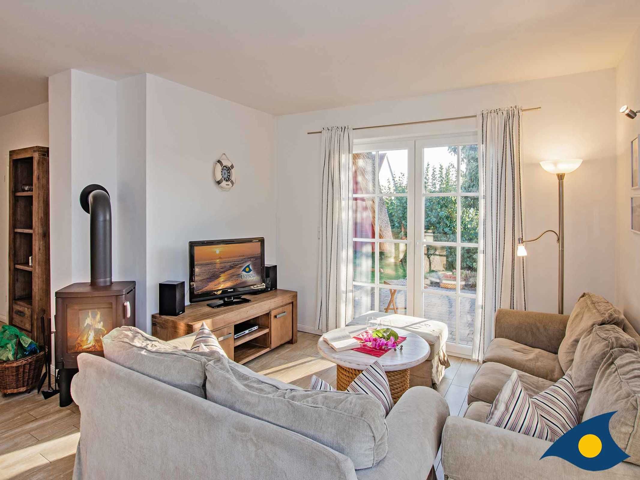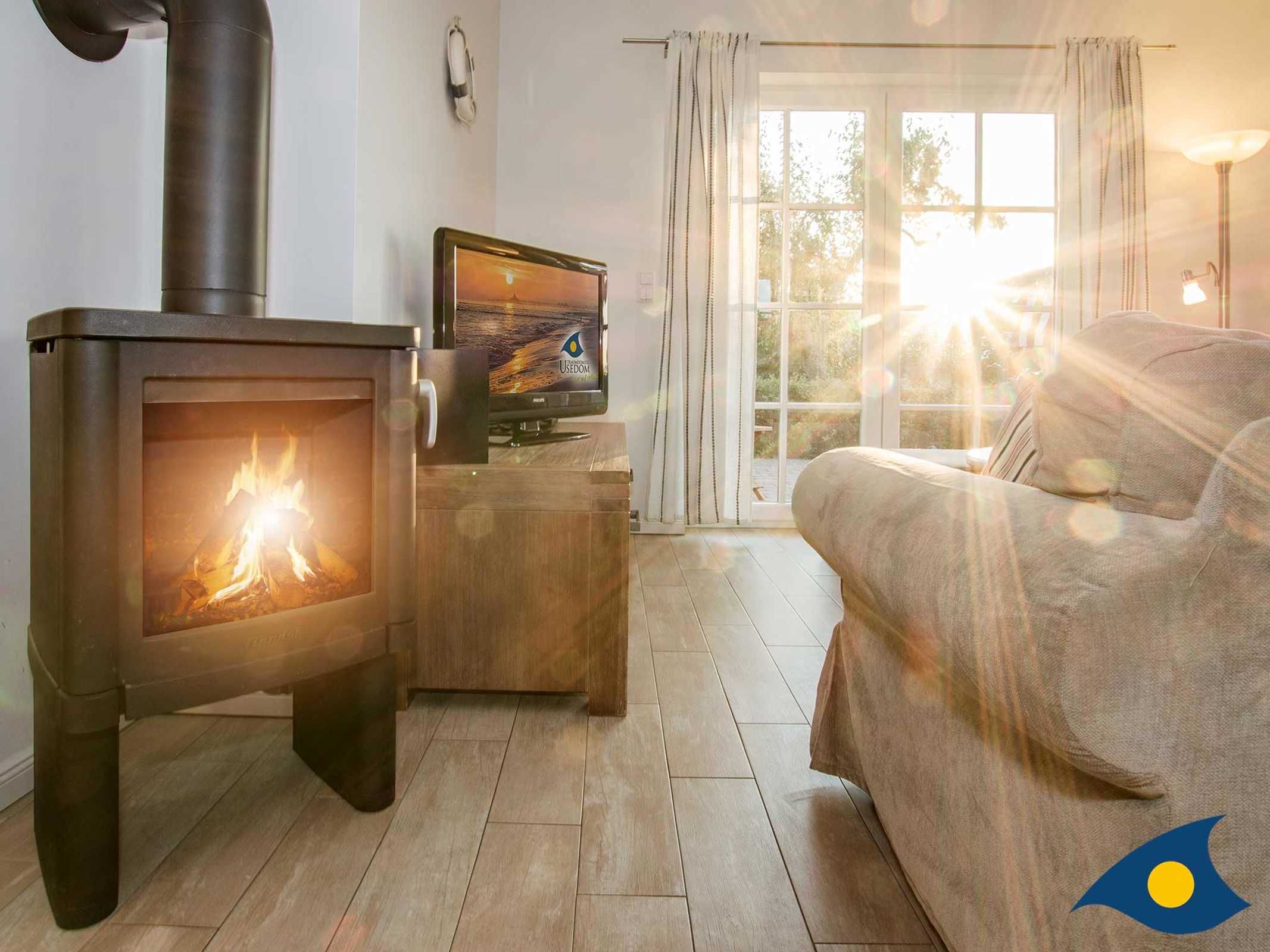 Im Erdgeschoss des Hauses begrüßt Sie ein gemütlicher Wohnraum inkl. Essplatz. Selbstversorger finden eine rundum gut ausgestattete Küche vor, die alle Wünsche erfüllt. Ein schwedischer Kamin sorgt für behagliche Stunden.