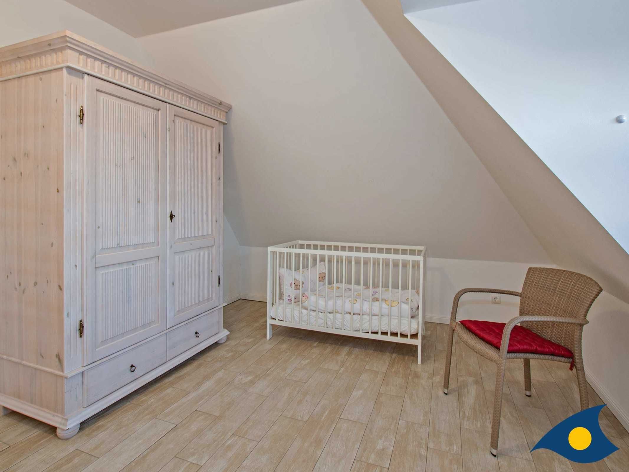 Für Kleine Usedom-Fans steht ein Kinderbett und ein Hochstuhl bereit.