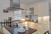Im Erdgeschoss des Hauses begrüßt Sie ein gemütlicher Wohnraum inkl. Essplatz. Selbstversorger finden eine rundum gut ausgestattete Küche vor, die alle Wünsche erfüllt. Ein schwedischer Kamin sorgt für behagliche Stunden.