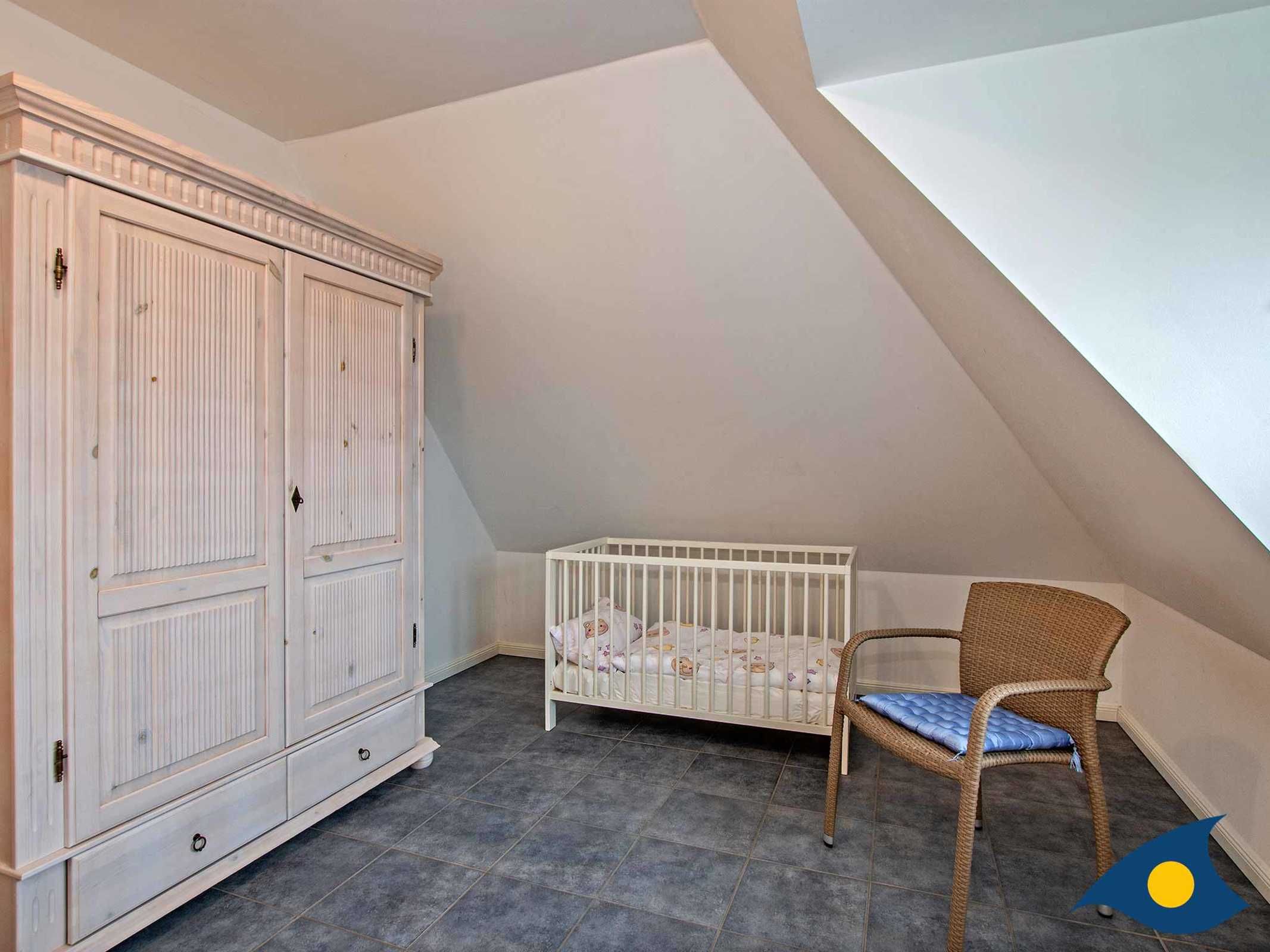 Für Kleine Usedom-Fans steht ein Kinderbett und ein Hochstuhl bereit.