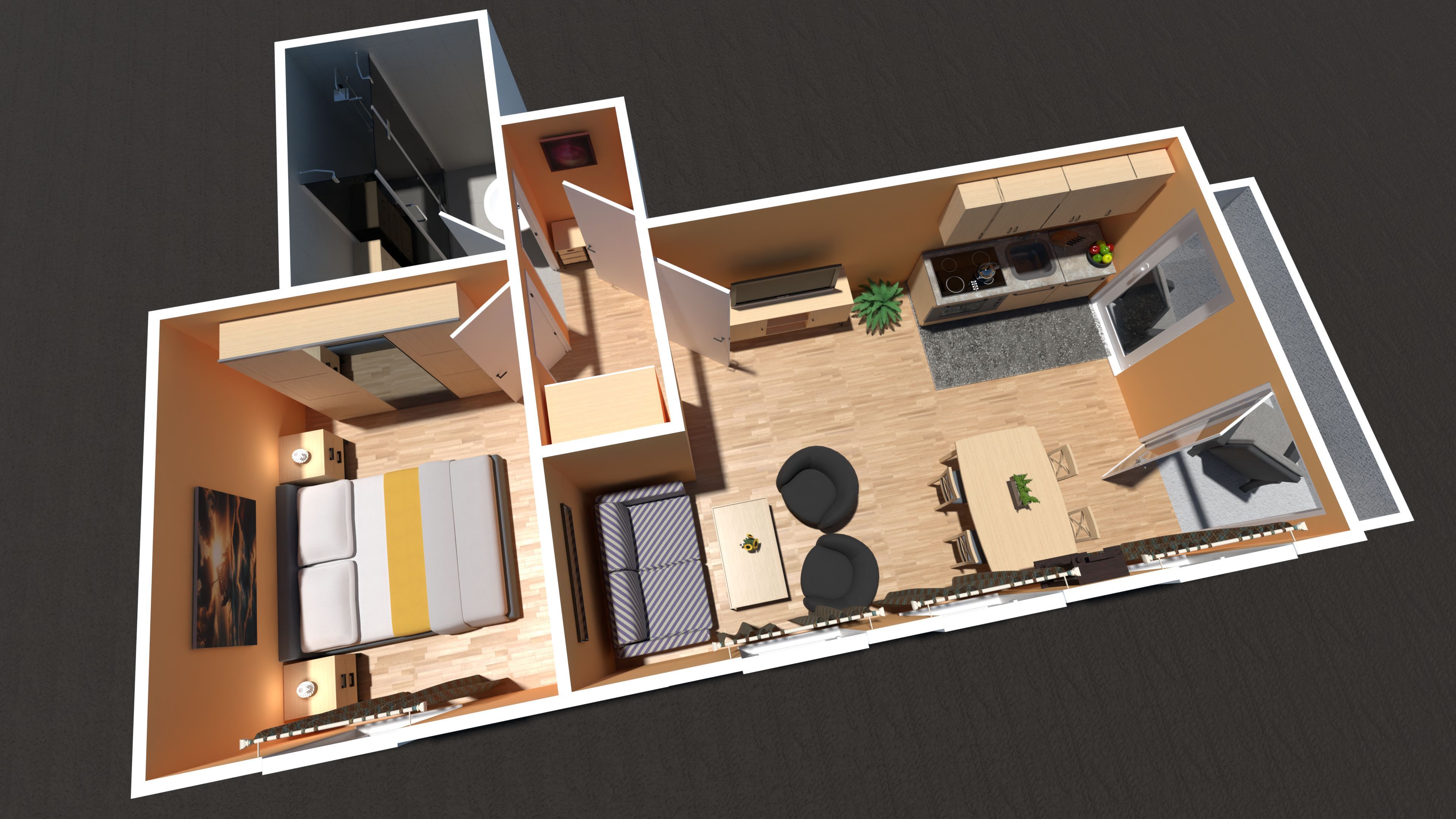 Dieses helle und freundliche 2-Raum-Appartement befindet sich im Erdgeschoss des Hauses. Auf 40 qm Wohnfläche erwarten Sie ein gemütliches Wohnzimmer inklusiver offener Küchenzeile.