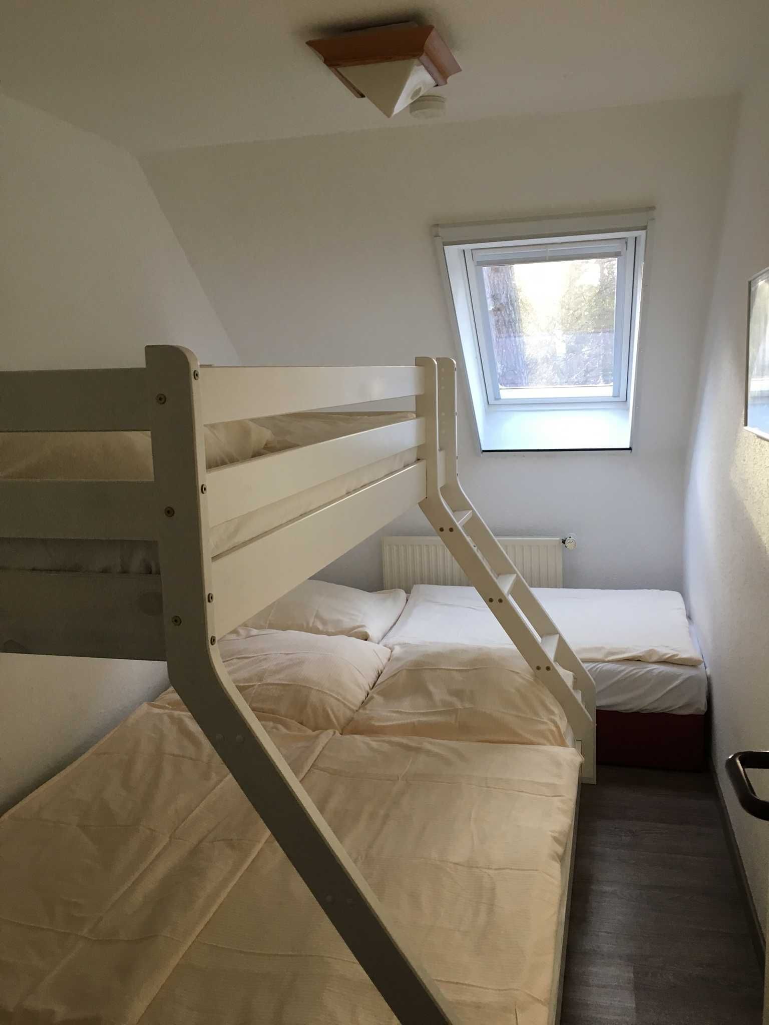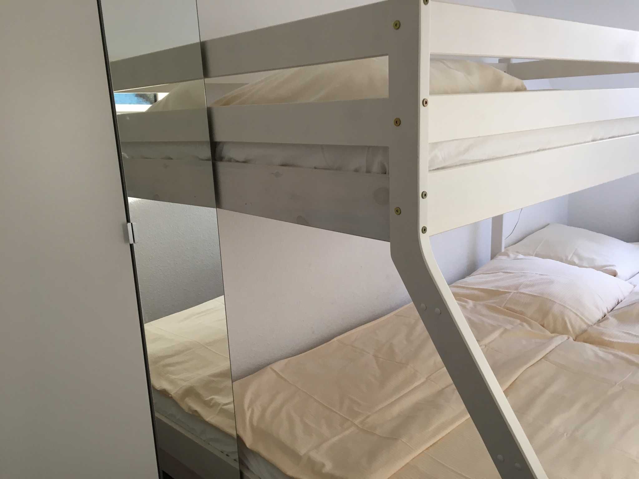 1 Einzelbetten 0,90 x 2,00 m, 1 Etagenbett 1,40 x 2,00 m unten und 0,80 x 2,00 m oben (für 3 Personen), 1 kleiner Kleiderschrank