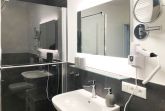 • Badezimmer: Modernes Bad mit bodentiefer Regendusche, Handtuchtrockner, beleuchtetem Spiegel, Kosmetikspiegel und hochwertigen Badmöbeln