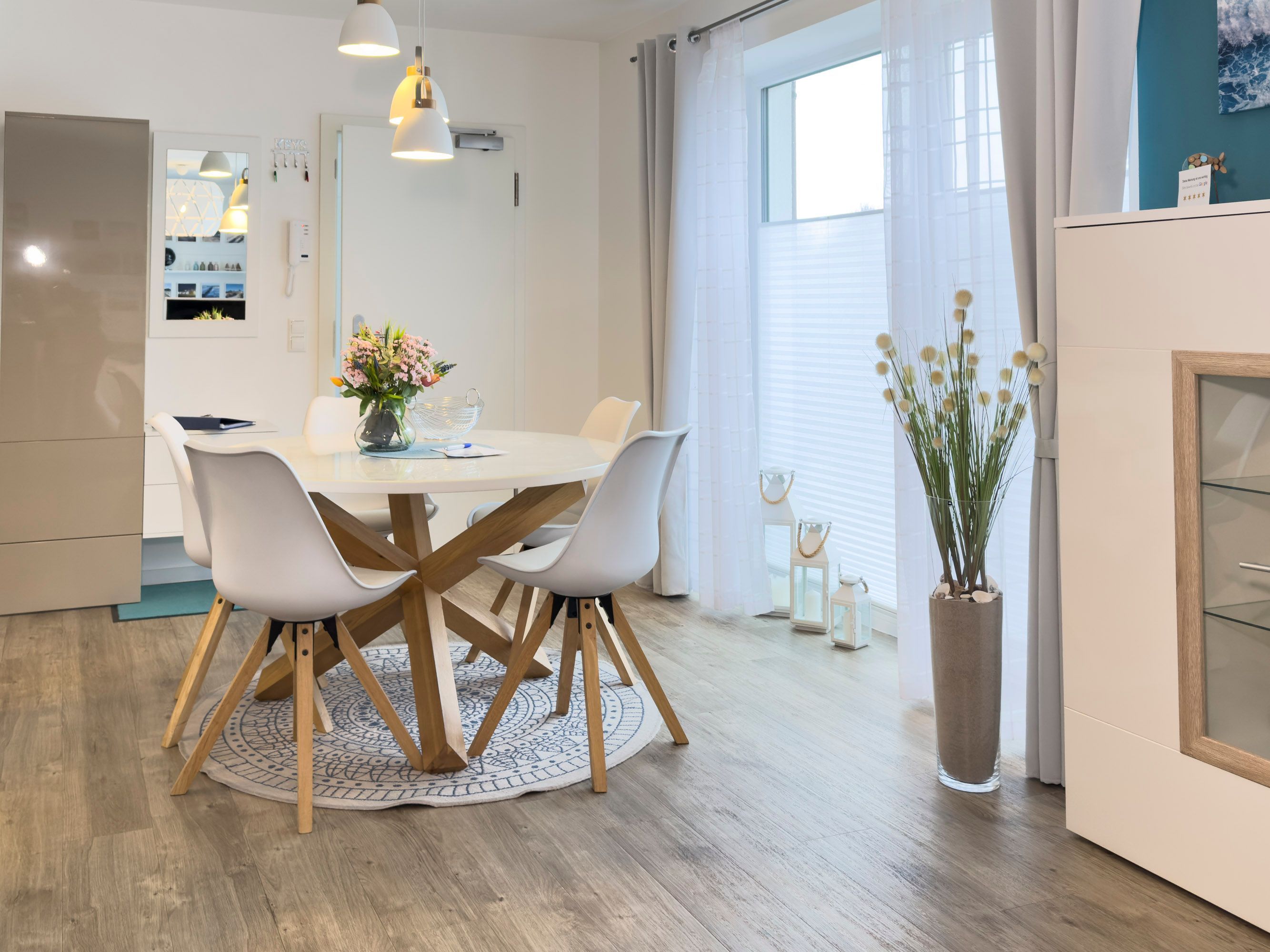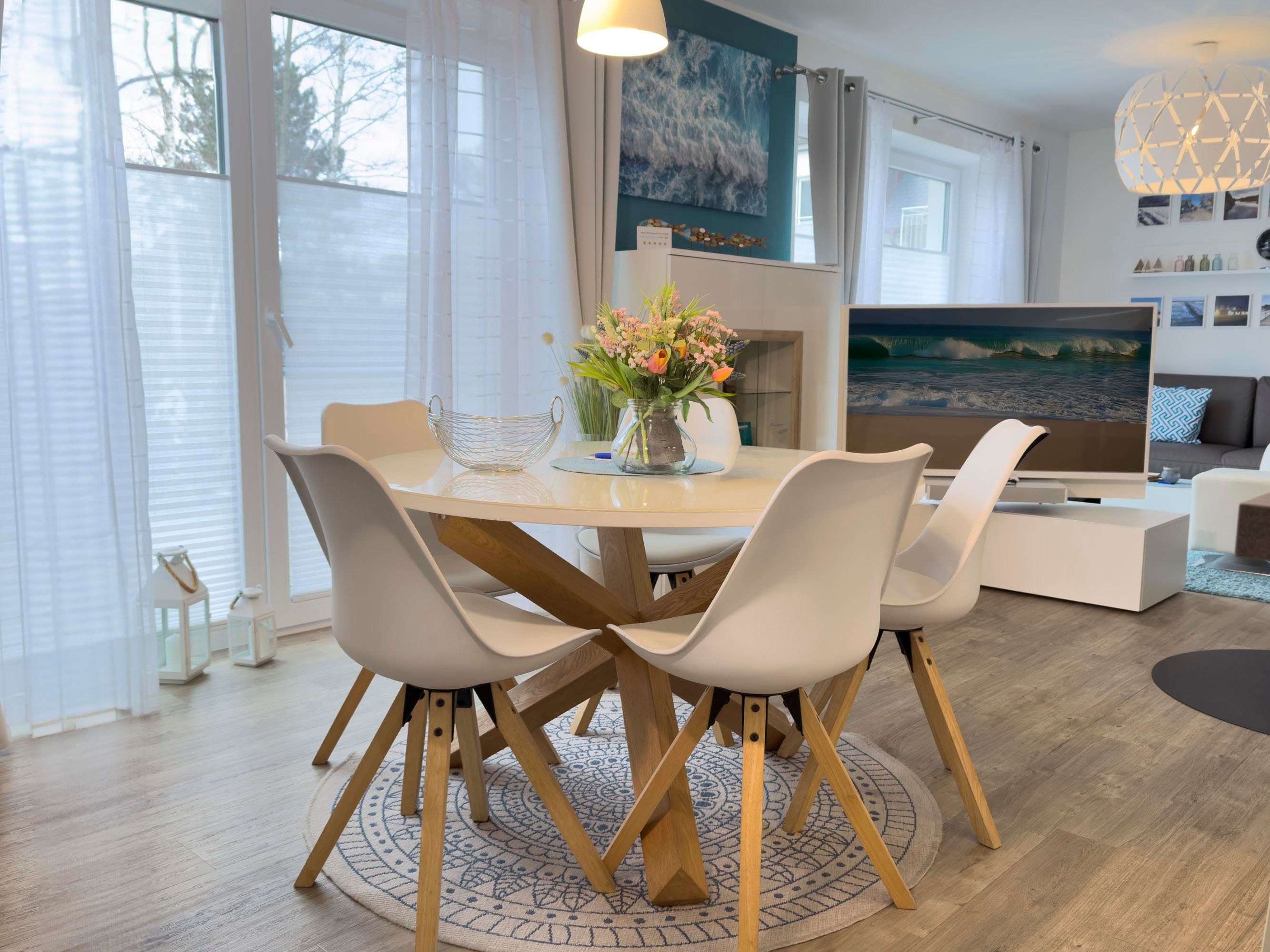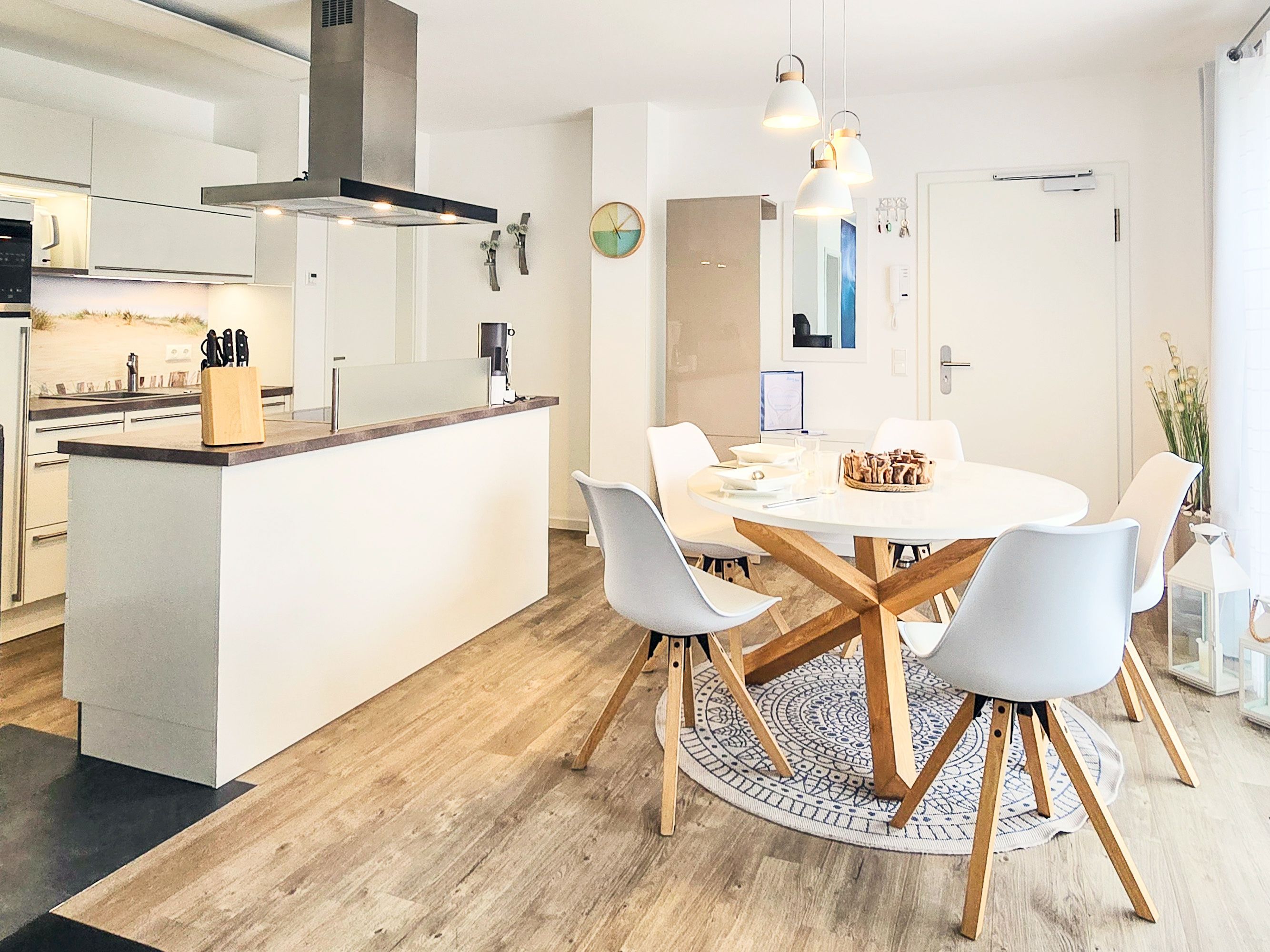 Willkommen in der Ferienwohnung Sterntaucher, Whg. 04 'Seaside' in Prerow! Diese stilvolle Unterkunft bietet auf 61 m² Platz für bis zu 4 Personen und verbindet modernen Komfort mit maritimem Flair.
