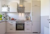 Gleich neben dem Eingang ist eine separate Küche. Sie ist modern eingerichtet und besitzt einen Herd mit Backofen, Mikrowelle, Geschirrspüler, natürlich auch Toaster, Wasserkocher und Kaffeemaschine. In den Schränken finden Sie genügend Geschirr und Töpfe. Ich denke, hier lässt sich gut kochen.
