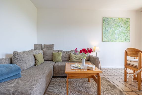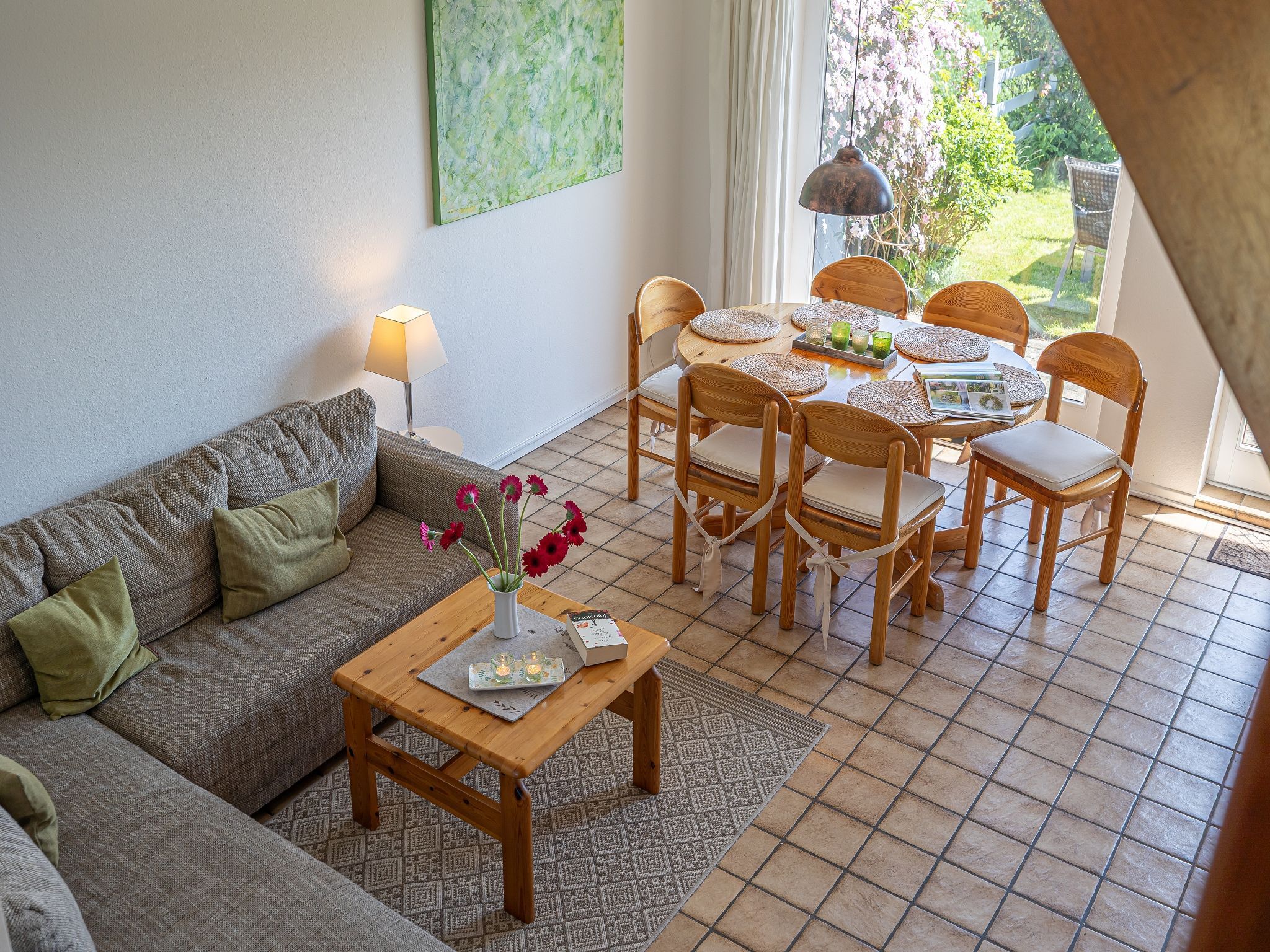 Diese Wohnung ist links die erste Wohnung im Reihenhaus. Sie hat einen separaten Eingang. Nach einem kleinen Flur betreten Sie den offenen Wohnbereich mit gemütlicher Couchecke zum kuscheln, Sitzplatz für gemeinsame Mahlzeiten und anschließender Terrasse. TV-Gerät und Radio ist vorhanden, ebenfalls WLAN.