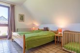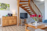 Über eine Holztreppe steigen Sie nun in die 1. Etage. Dort ist ein Schlafzimmer mit bequemen Doppelbett, einem Kinderbett und Schrank darin. Durch die Fenster kann man schon das Meer hören, wenn es rauscht.