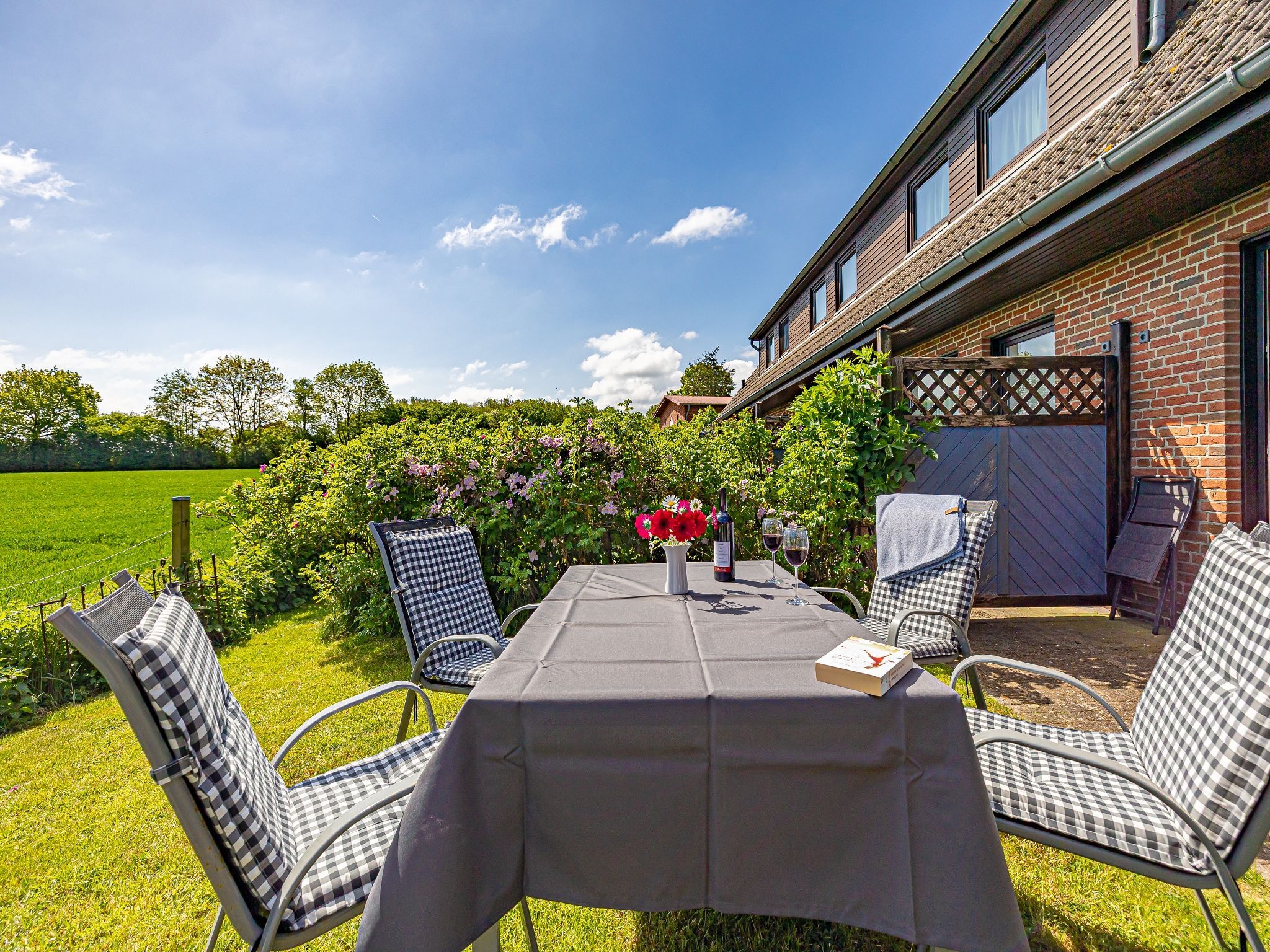 Hinter dem Haus ziehen sich Wiesen und Weiden dahin. Eingegrenzt von den typischen „Knicks“, aus denen morgens und abends Rehe und Fasane zum äsen kommen. Von Ihrer Terrasse aus gut zu beobachten.