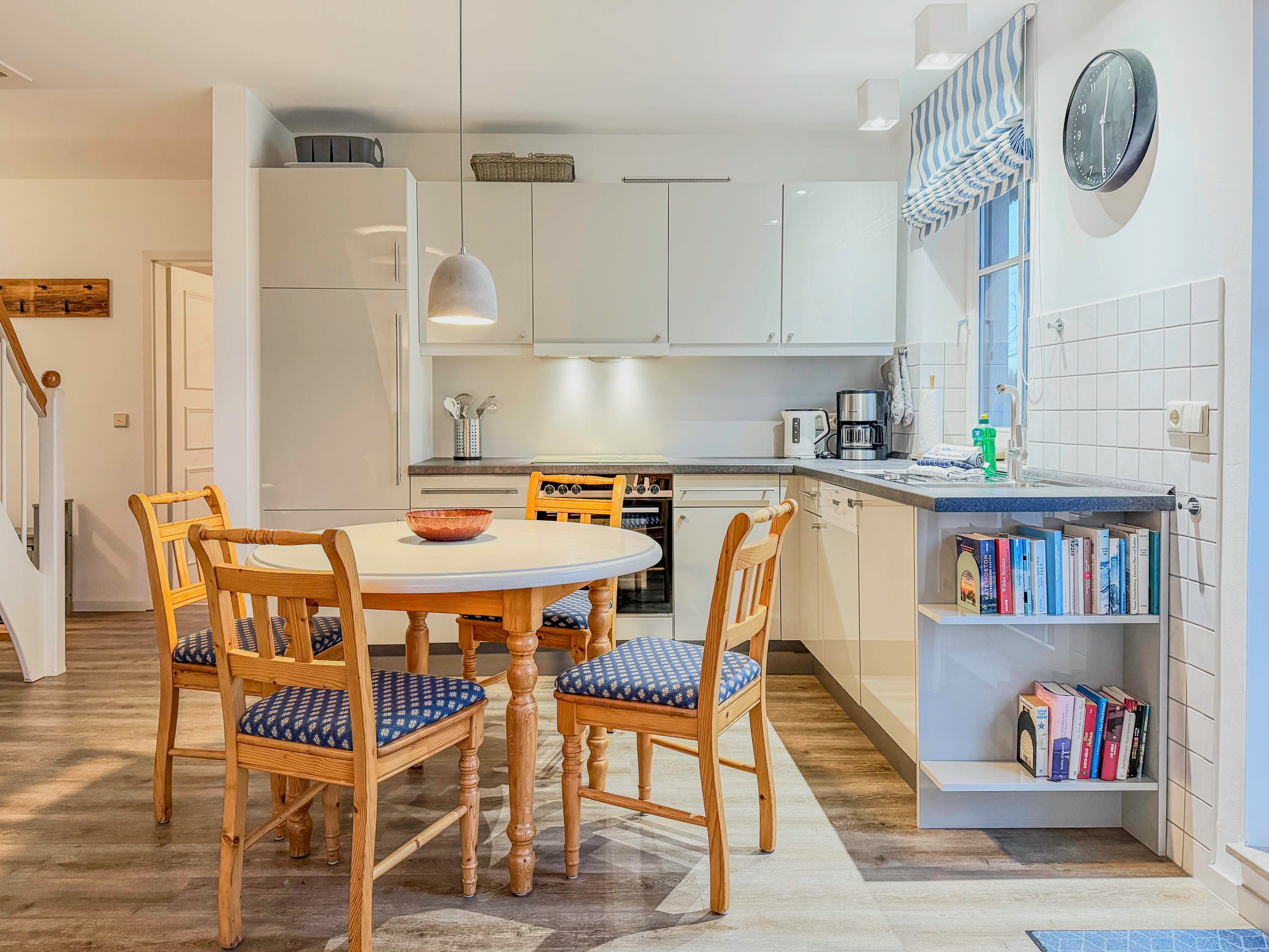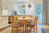 • Voll ausgestattete Küchenzeile mit Cerankochfeld, Backofen, Geschirrspüler, Kühlschrank, Toaster, Wasserkocher und Filterkaffeemaschine