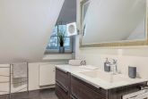 • Modernes Tageslichtbad mit ebenerdiger Dusche, Bidet, beleuchtetem Kosmetikspiegel und integriertem Wandradio