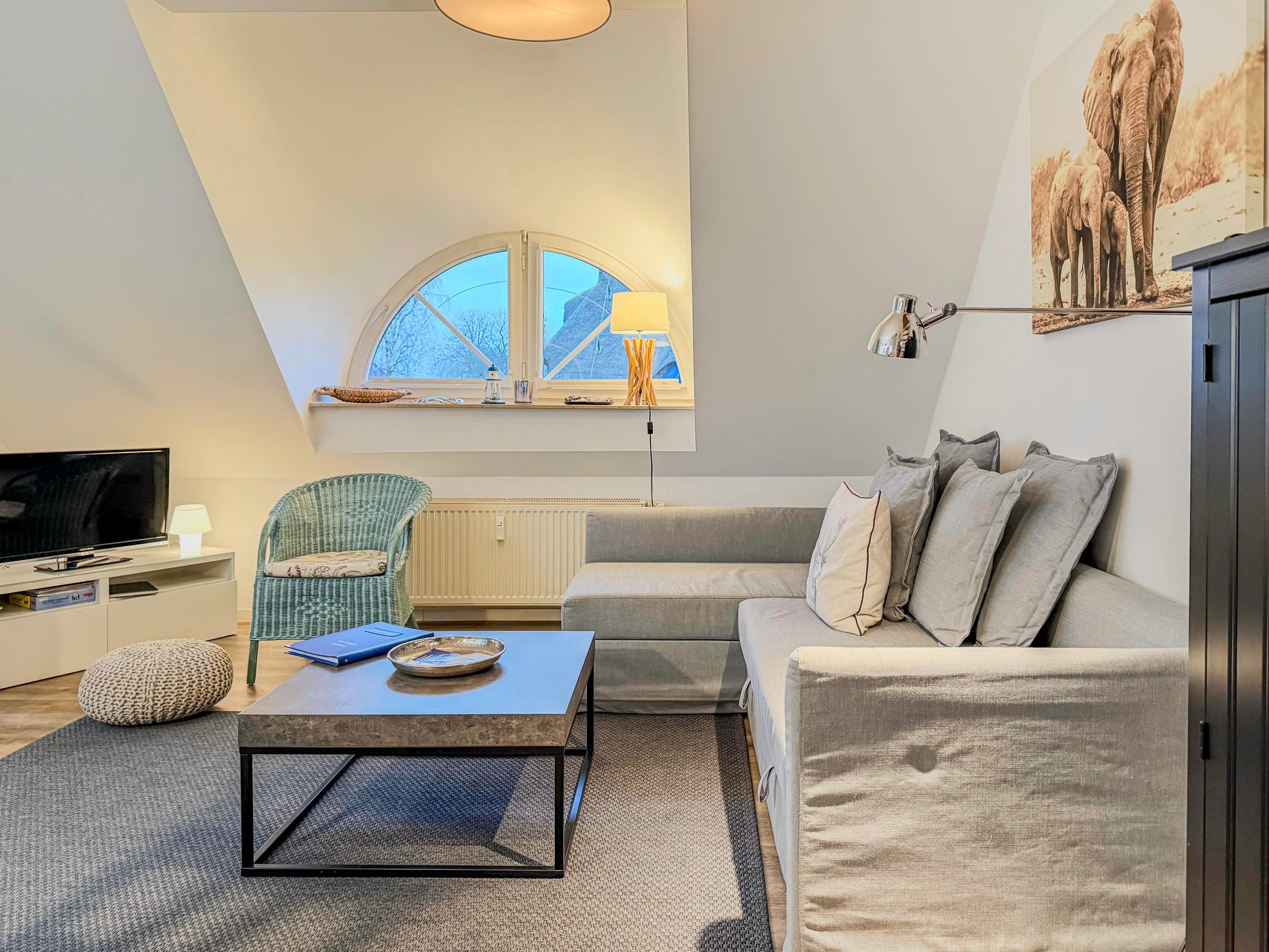 • Einladender Wohnbereich mit bequemer Sitzgruppe, Flachbild-TV, Blu-ray-Player, CD-Player und einer Auswahl an Büchern und Spielen