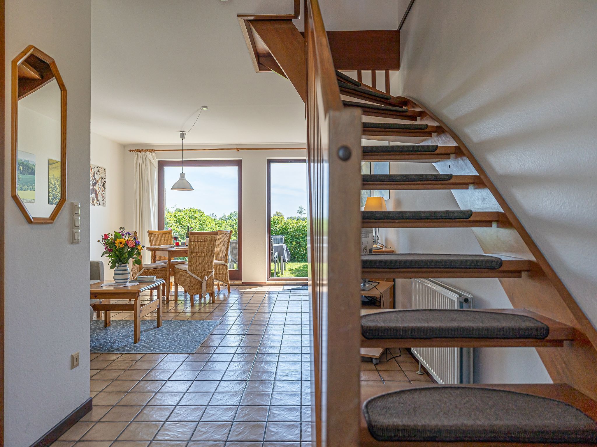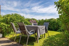 In einer der fünf schöne Ferienwohnungen im Reihenhaus wohnen hinter dem eingerückten Rosenwall an der Dorfstraße nur unweit vom Meer entfernt. Die Ferienwohnung Möwe für bis zu 4 Personen (plus 1 Kleinkind) bietet viel Raum zum Wohlfühlen und Entspannen.