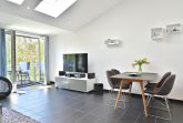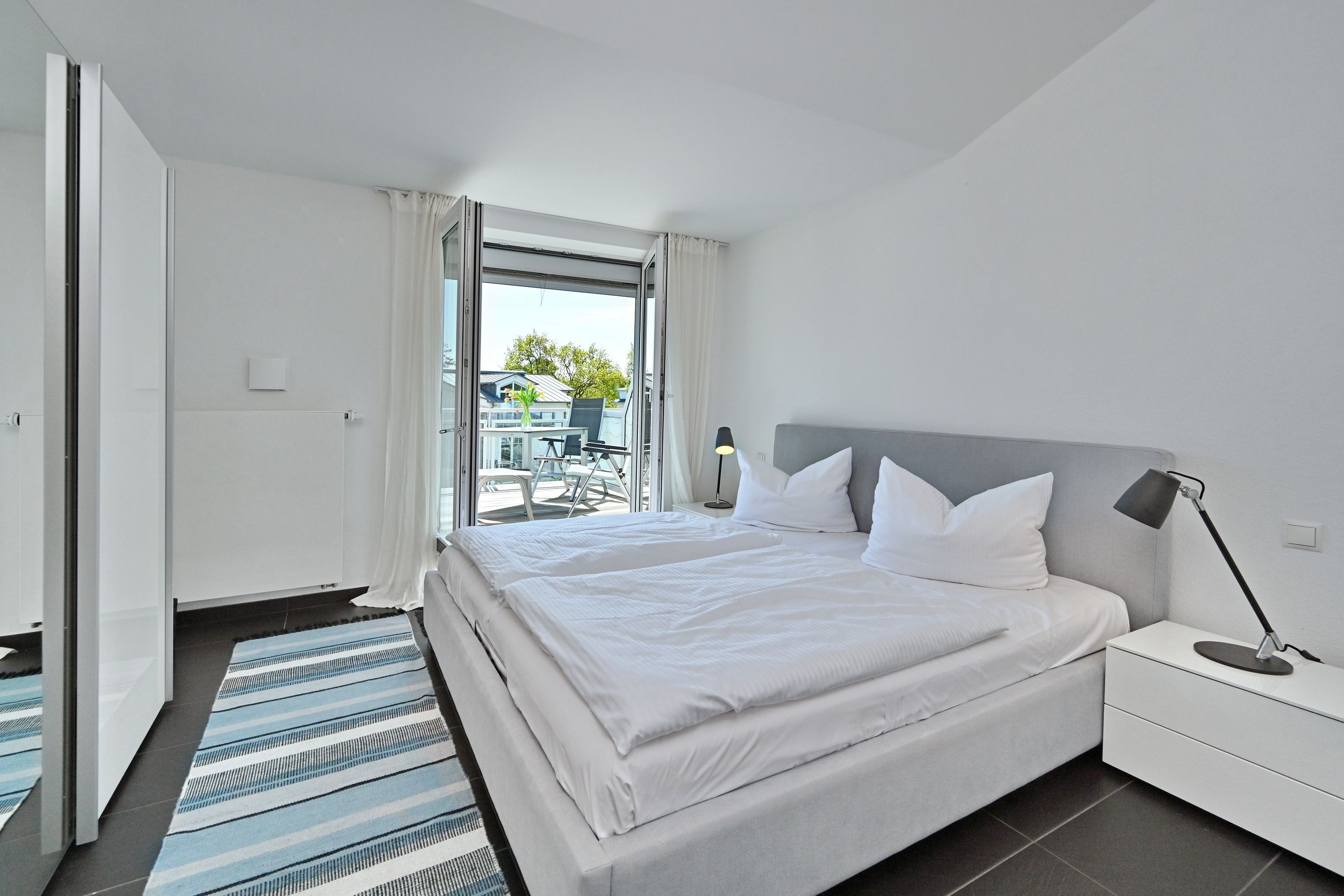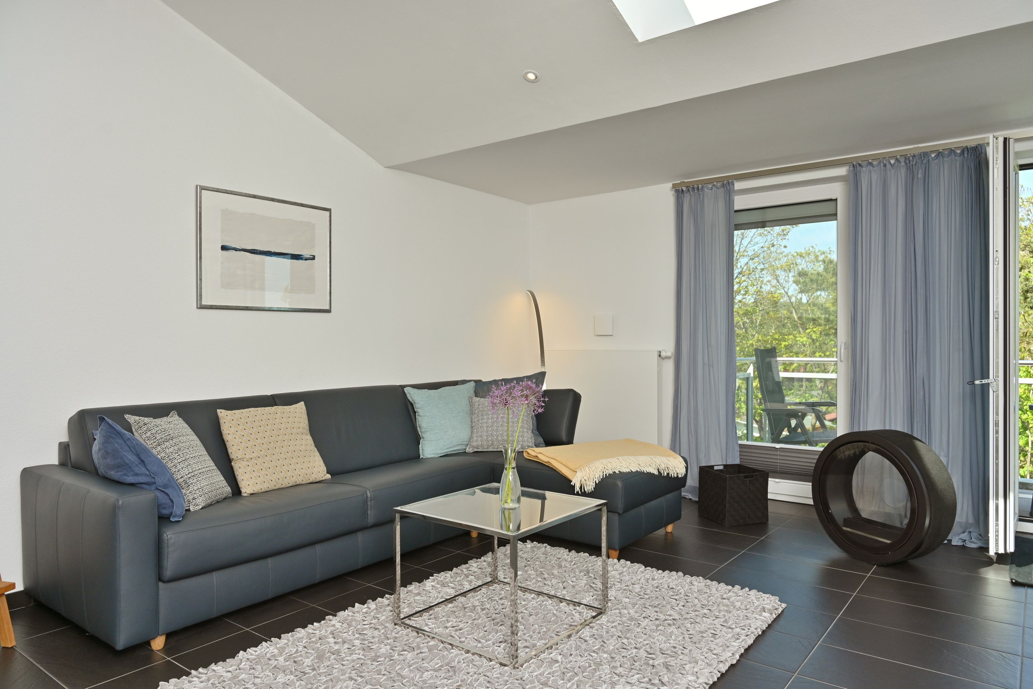 Auch aus der Unterkunft genießen Sie die Nähe zum Strand und den weiten Blick über das Meer. KALA verfügt über einen Nord-Balkon und eine Süd-Dachterrasse, ein Schlafzimmer mit Doppelbett und einen großzügigen Wohnbereich mit Ethanol-Kamin und integrierter Küche und Essbereich.